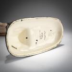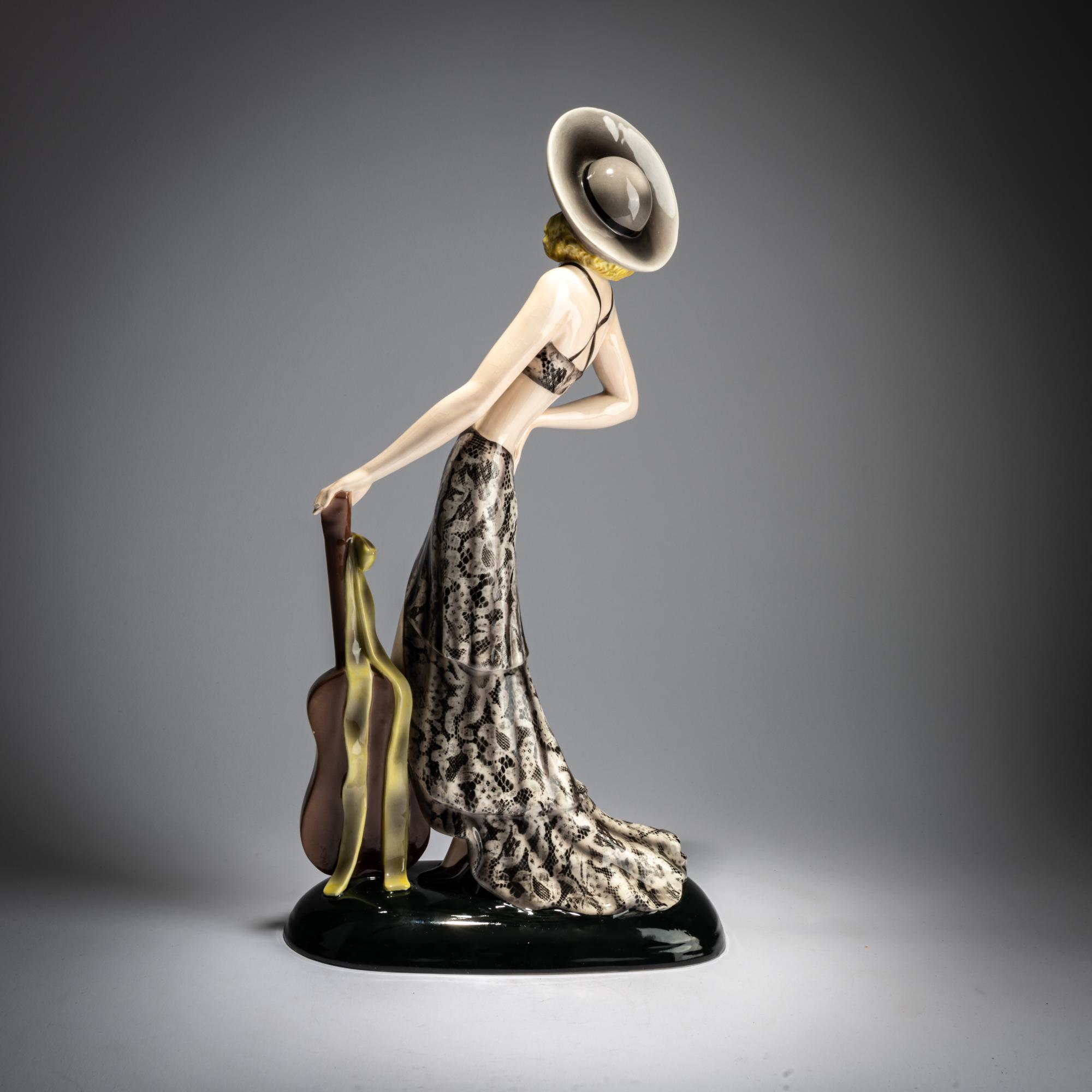 H. 42 cm. Ausführung: Friedrich Goldscheider, Wien. Steingut, polychrom glasiert. Boden bez.: MADE IN AUSTRIA, Goldscheider Wien, Dakon (schwarze Glasurstempel) 6704 446 2 (geprägt). F., N. (handschriftlich, schwarz).