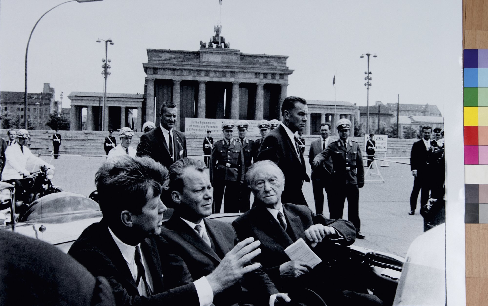 'John F. Kennedy, Willy Brandt, Konrad Adenauer vor dem Brandenburger Tor (eine einzigartige Aufnahme)', 1973