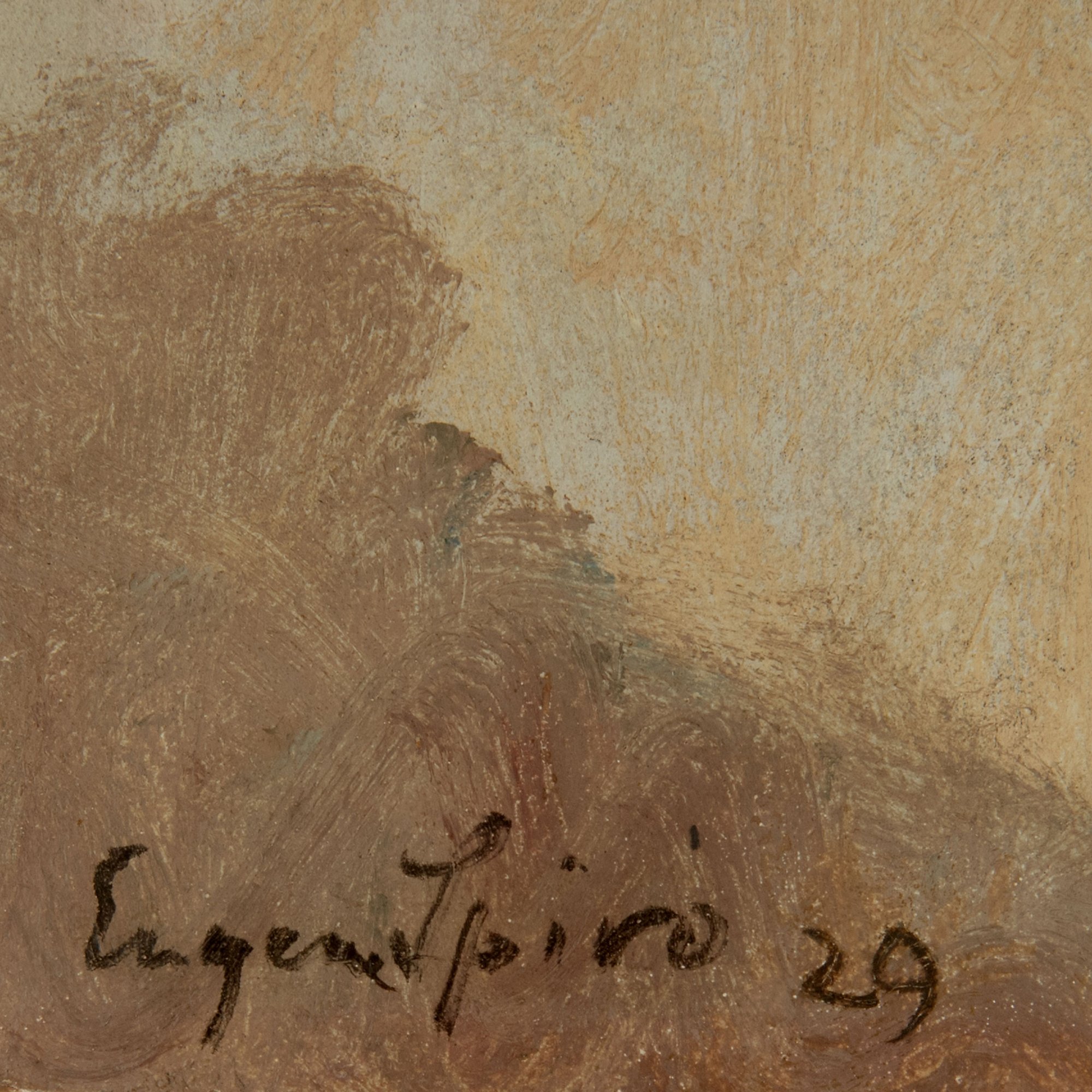 Öl auf Malpappe. 35 x 45,5 cm (Malpappe), 47,5 x 58,0 cm (gerahmt). Links unten sign.: Eugen Spiro und datiert 19(29) (Öl). Verso am linken Rand gestürzt bez.: SPI 46, verschiedene Etiketten, darunter das der Galerie von Abercron Köln - München und das der Kunstspedition Ollendorf Fine Arts New York und San Francisco.