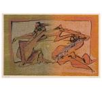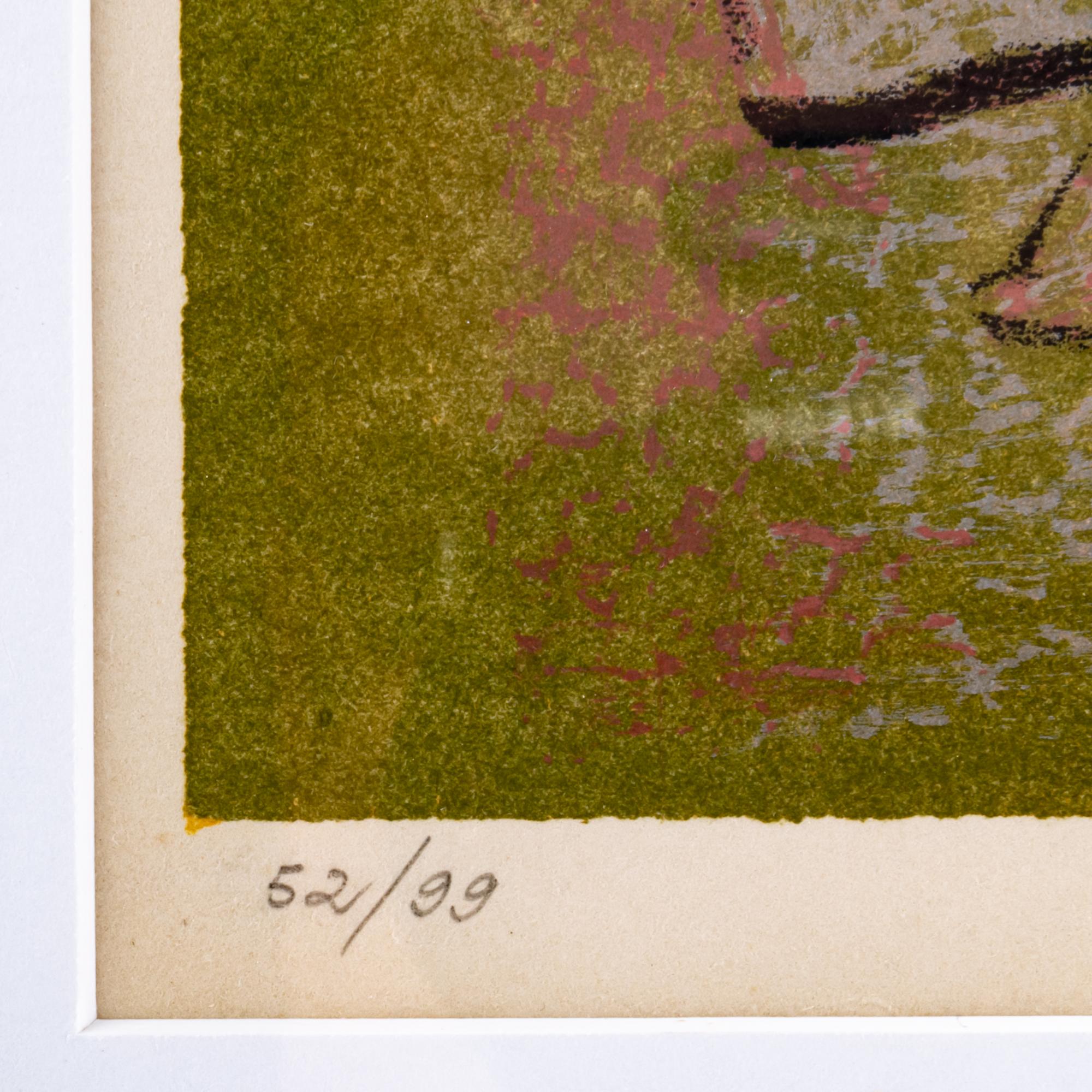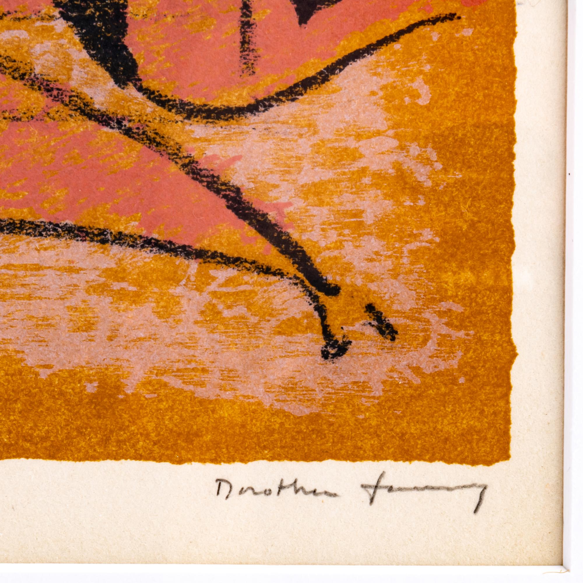 Farblithographie auf Velin. 25,0 x 39,0 cm (Darstellung), 49,0 x 61,3 cm (Rahmen). Unten links nummeriert: 52/99, unten rechts signiert: Dorothea Tanning (Bleistift). Exemplar 52 von 99 Exemplaren. Unter Glas im Passepartout gerahmt.