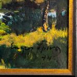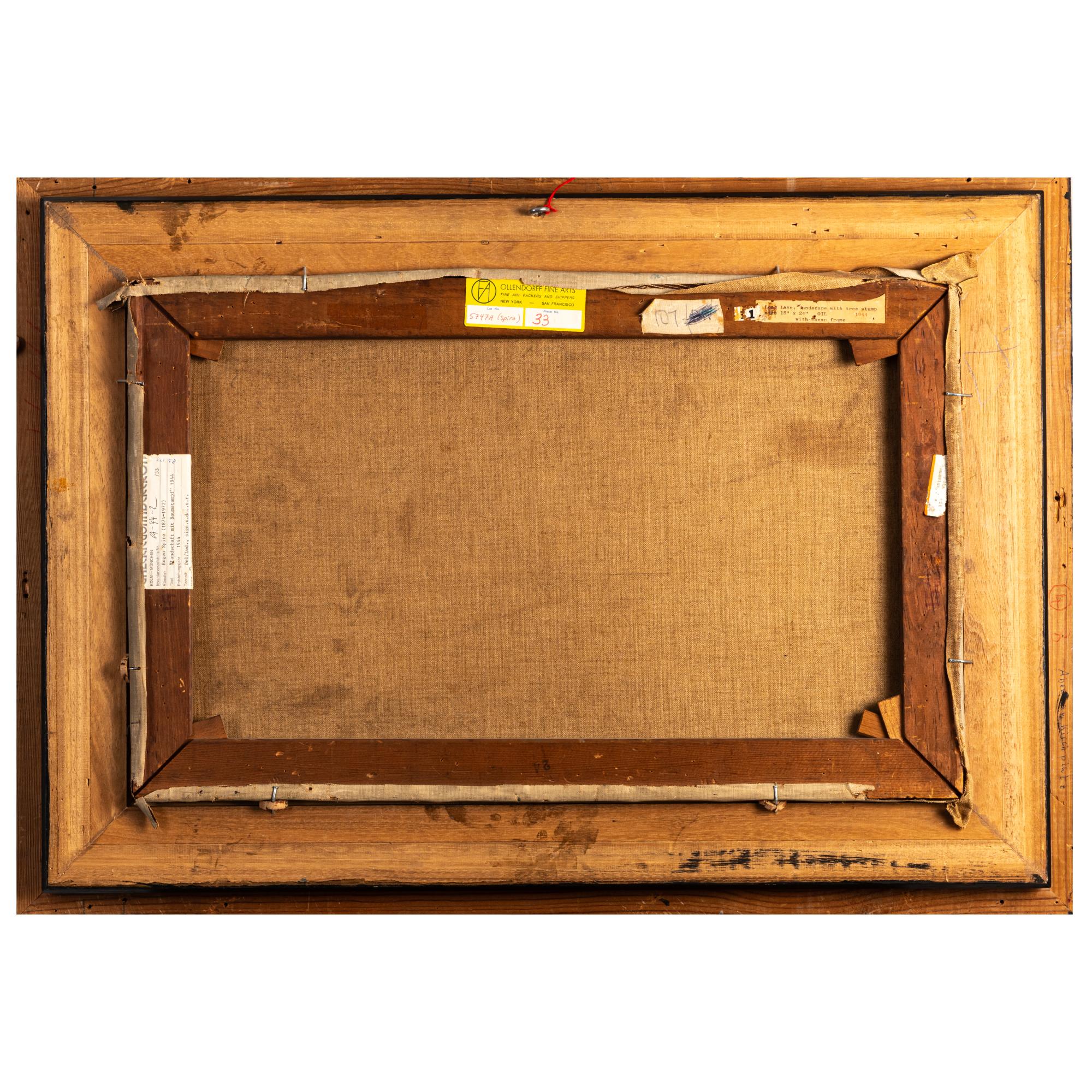 Öl auf Leinwand. 38,5 x 61,5 cm (Leinwand), 57,0 x 80,3 cm (Rahmen). Unten rechts signiert: Eugen Spiro und datiert: (19)44 (Öl). Verso auf mehreren Klebeetiketten, u.a. der Galerie von Abercron, bezeichnet. Gerahmt.