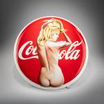 Farboffsetlithographie auf rundem, konvexem, emailliertem Metallschild. Ø 42,0 cm (mit Aufhängung). Am unteren Rand nummeriert: 7/8 und signiert: Mel Ramos und datiert: 2002 (silberner Faserstift). Exemplar 7 von 8 Exemplaren.
