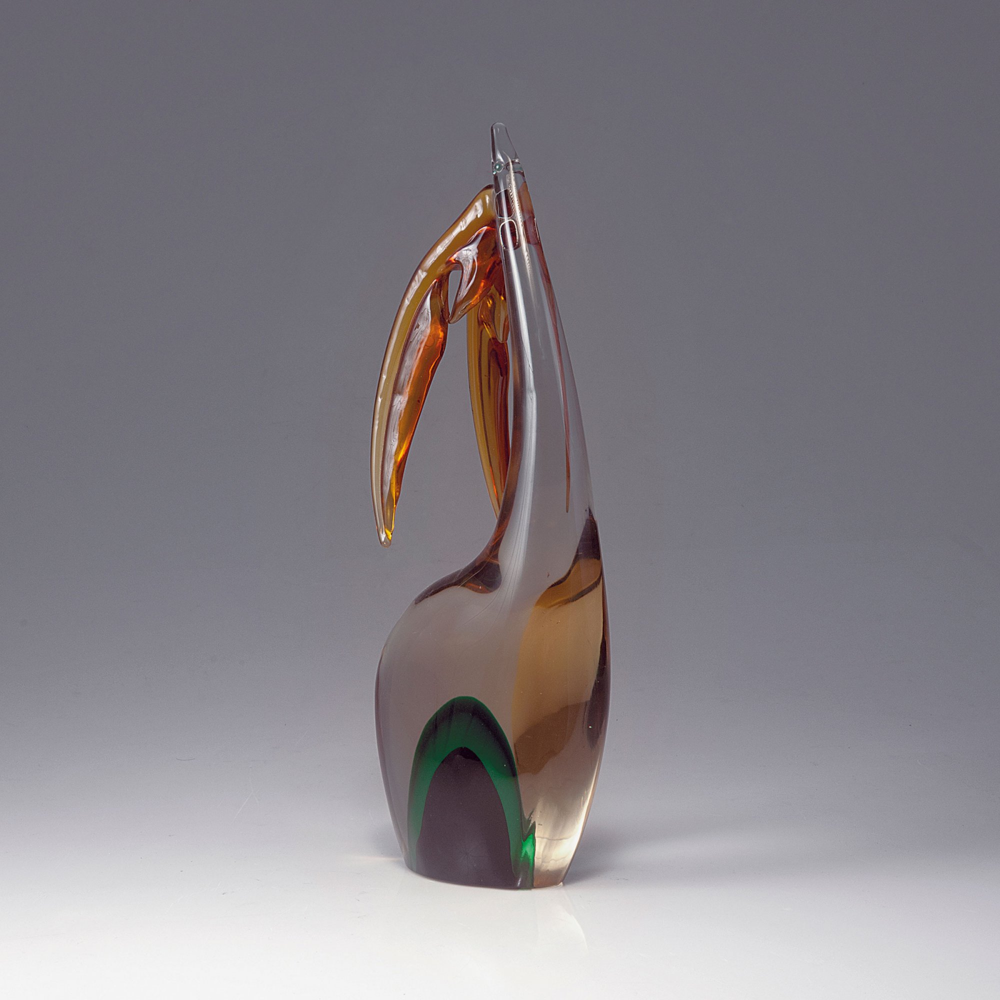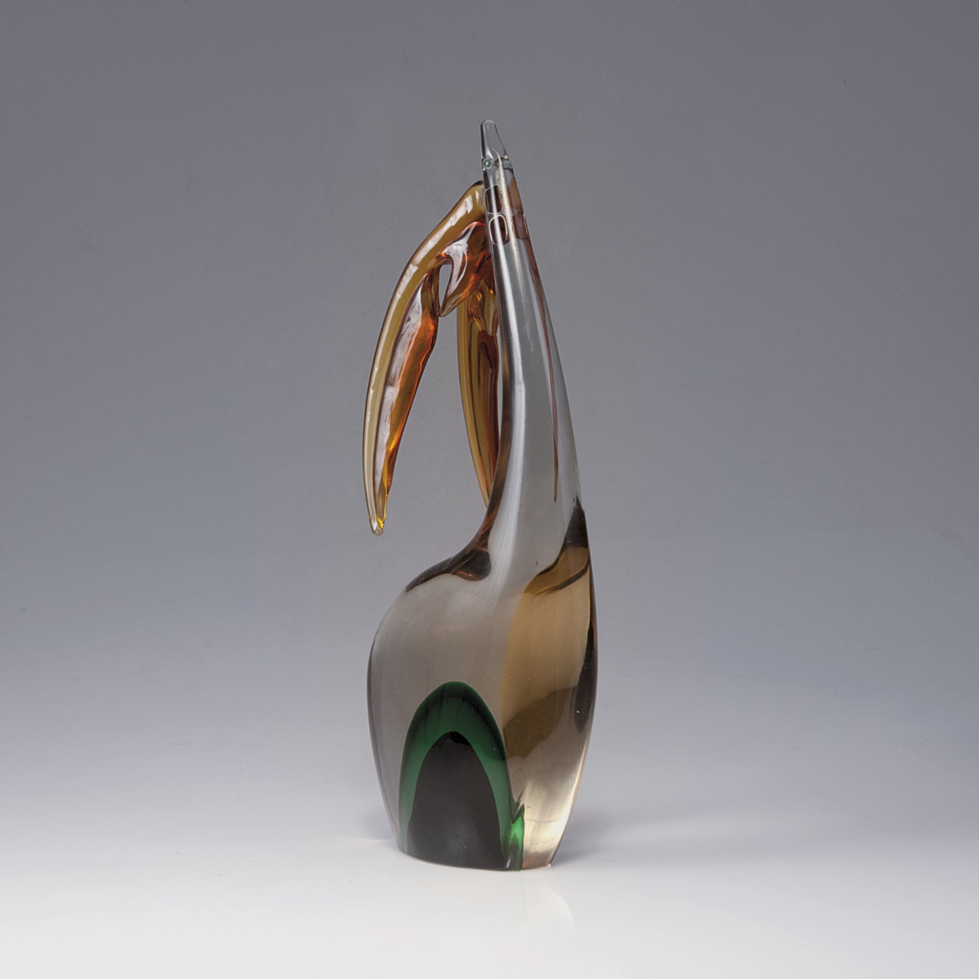 H. 36,7 cm. Ausführung: Vetreria Gino Cenedese. Überfangglas, farblos, grün, blau und bersteinfarben.