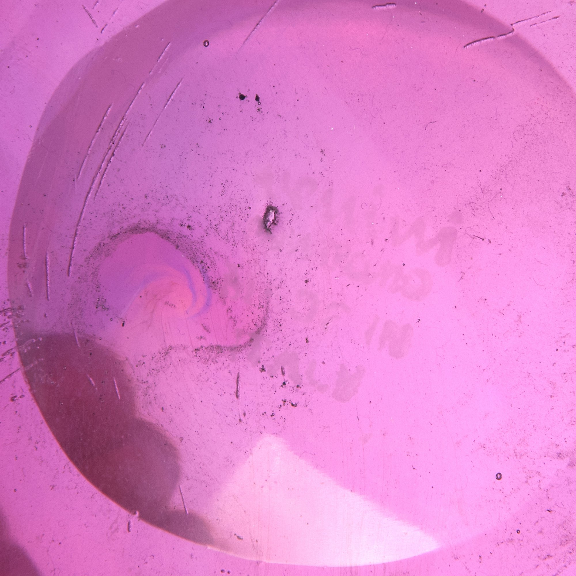 Auf runder Standzone sich leicht erweiternde Gefäßwandung. H. 16,6 cm. Ausführung: Venini & C. Überfangglas, farblos und rosarot. Oberfläche eisglasartig strukturiert geätzt und schwach irisiert. Am Boden bez.: venini murano MADE IN ITALY (Ätzstempel).