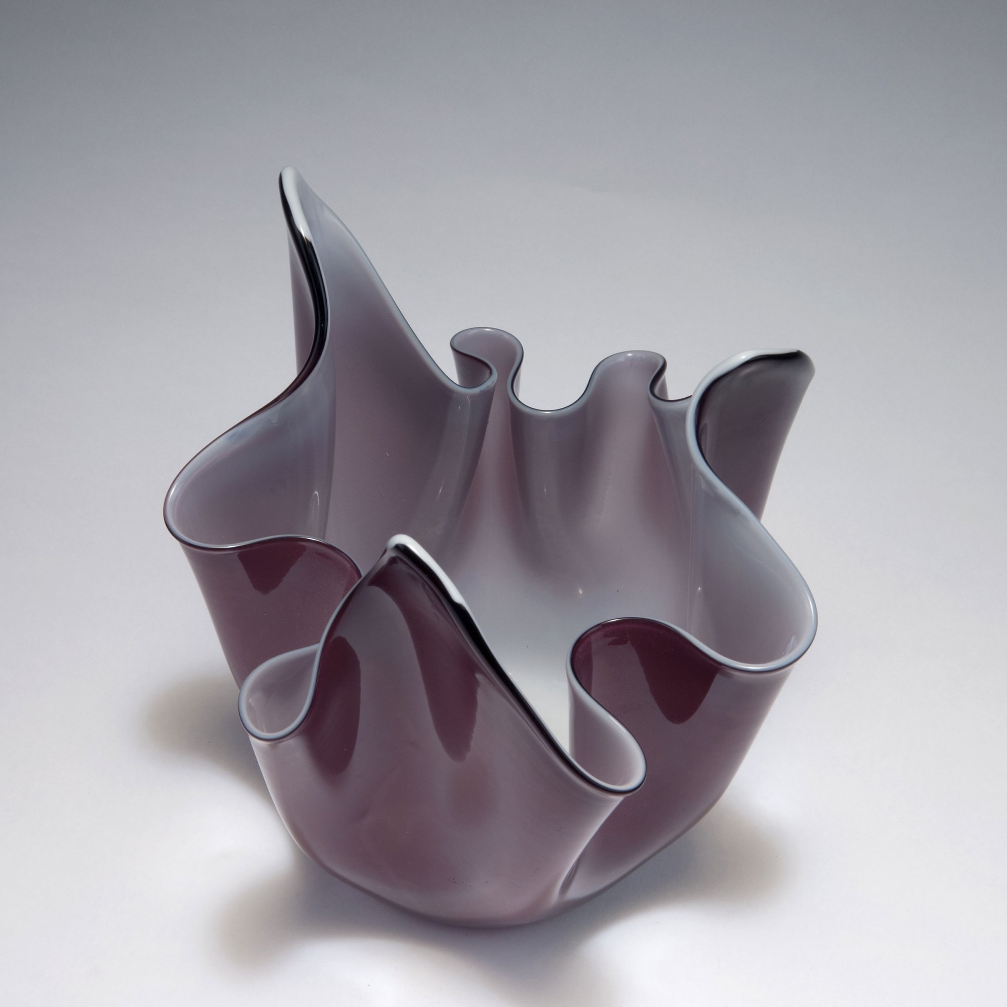H. 23,4 cm. Ausführung: Venini & C. Glas, milchig weiß und violett. Bez.: venini murano ITALIA (Ätzstempel).