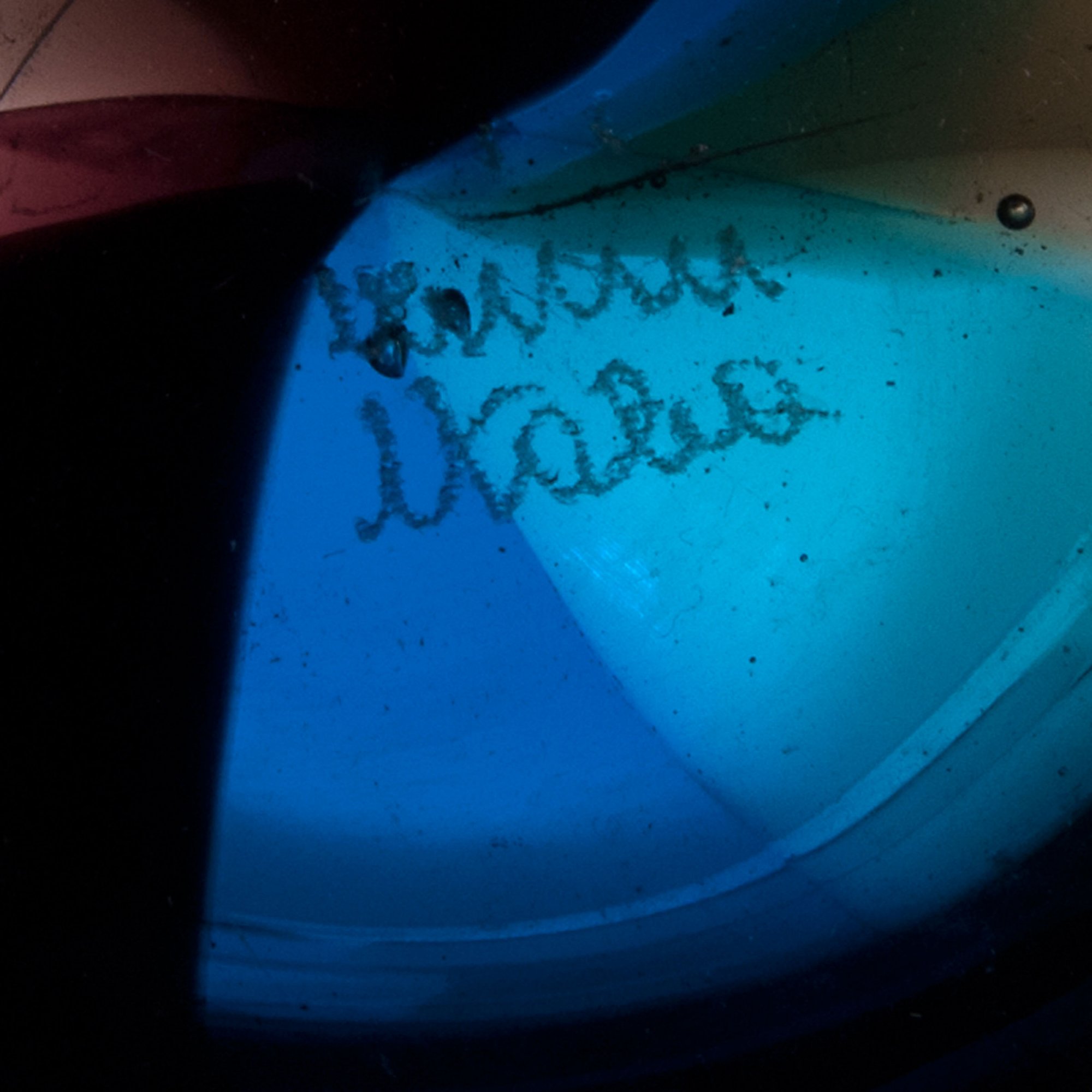 Auf ovaler Standfläche leicht asymmetrische Glockenform mit bewegtem Mündungsrand. H. 20,6 cm. Ausführung: Venini & C. Miteinander verschmolzene Plättchen aus grauem, violettem und azurblauem Glas. Bez.: venini italia (diamantgerissen).