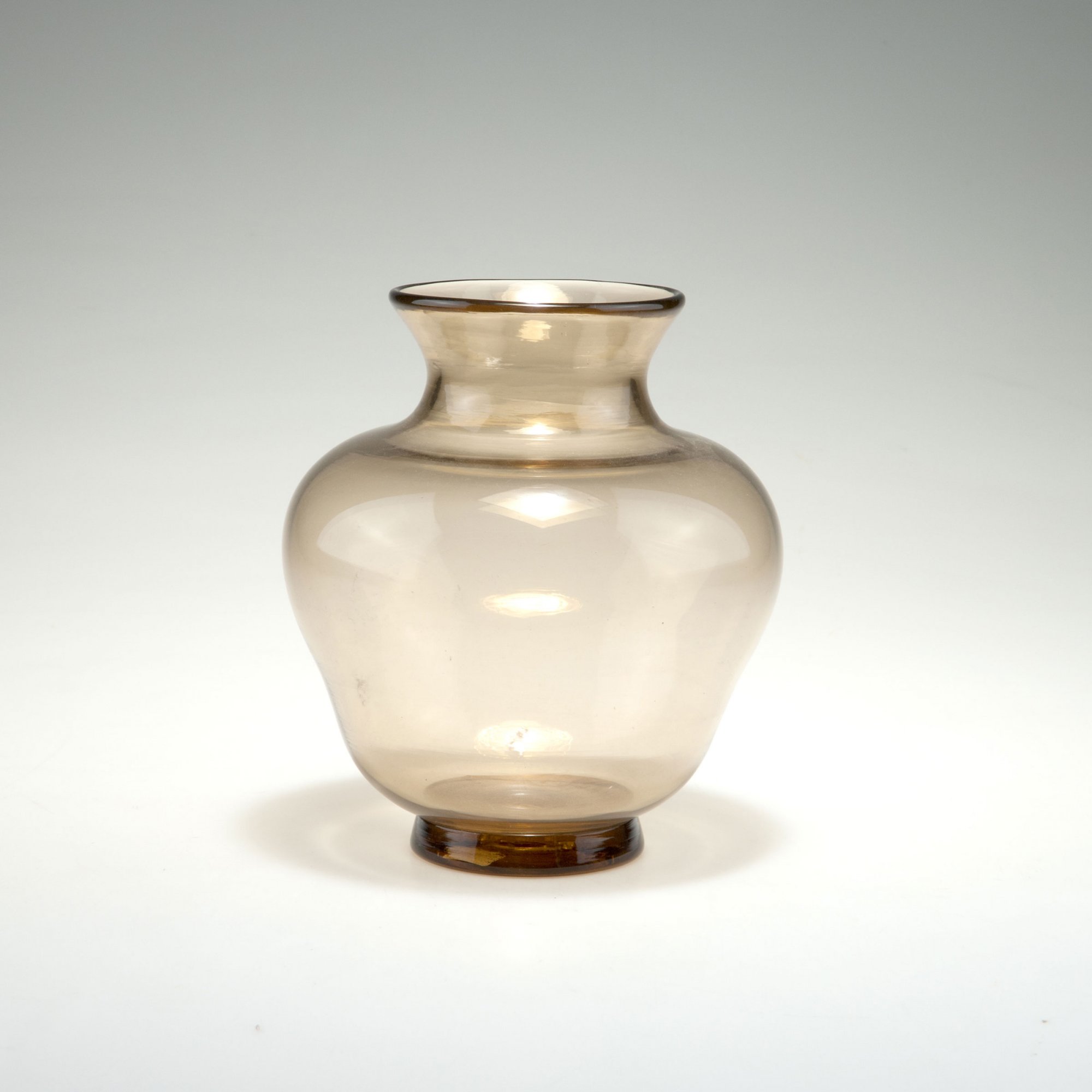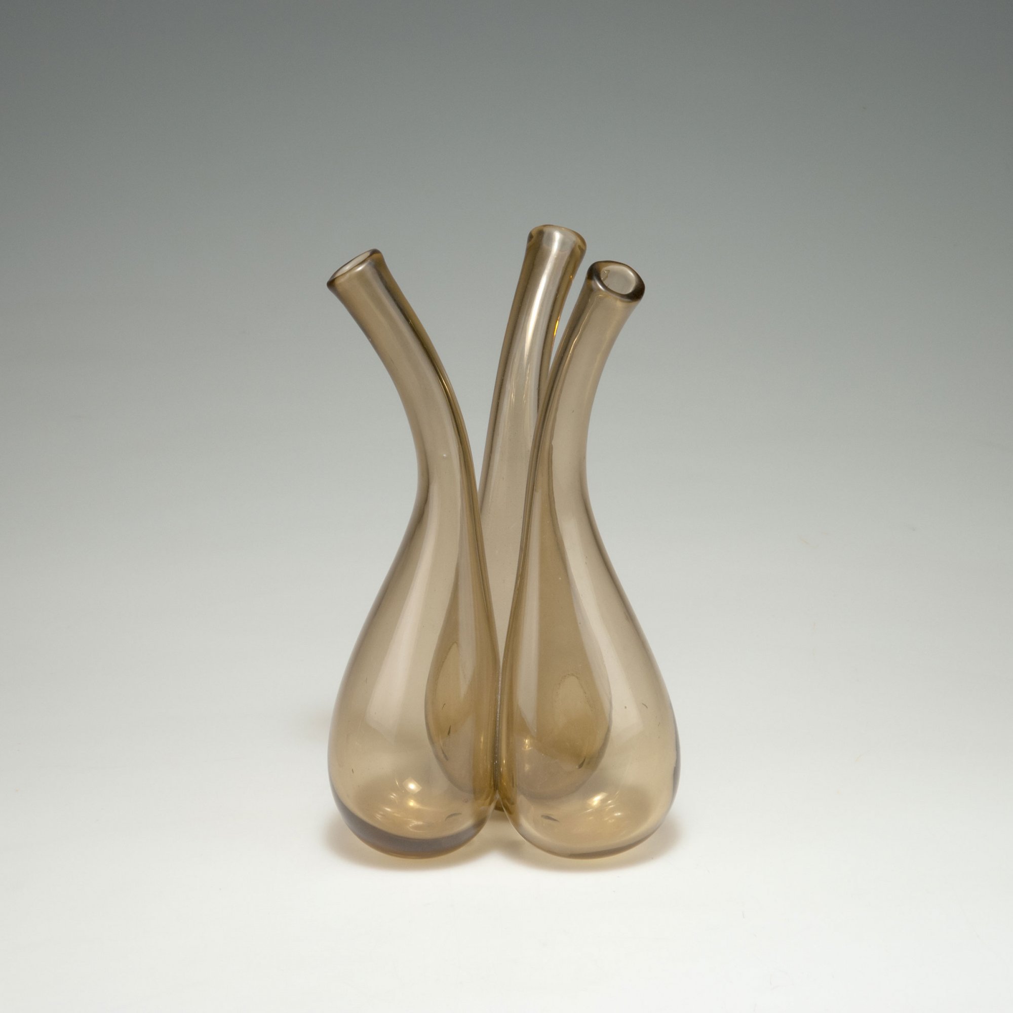 H. 18 cm; H. 21,6 cm; H. 23 cm. Bernsteinfarbenes Glas.