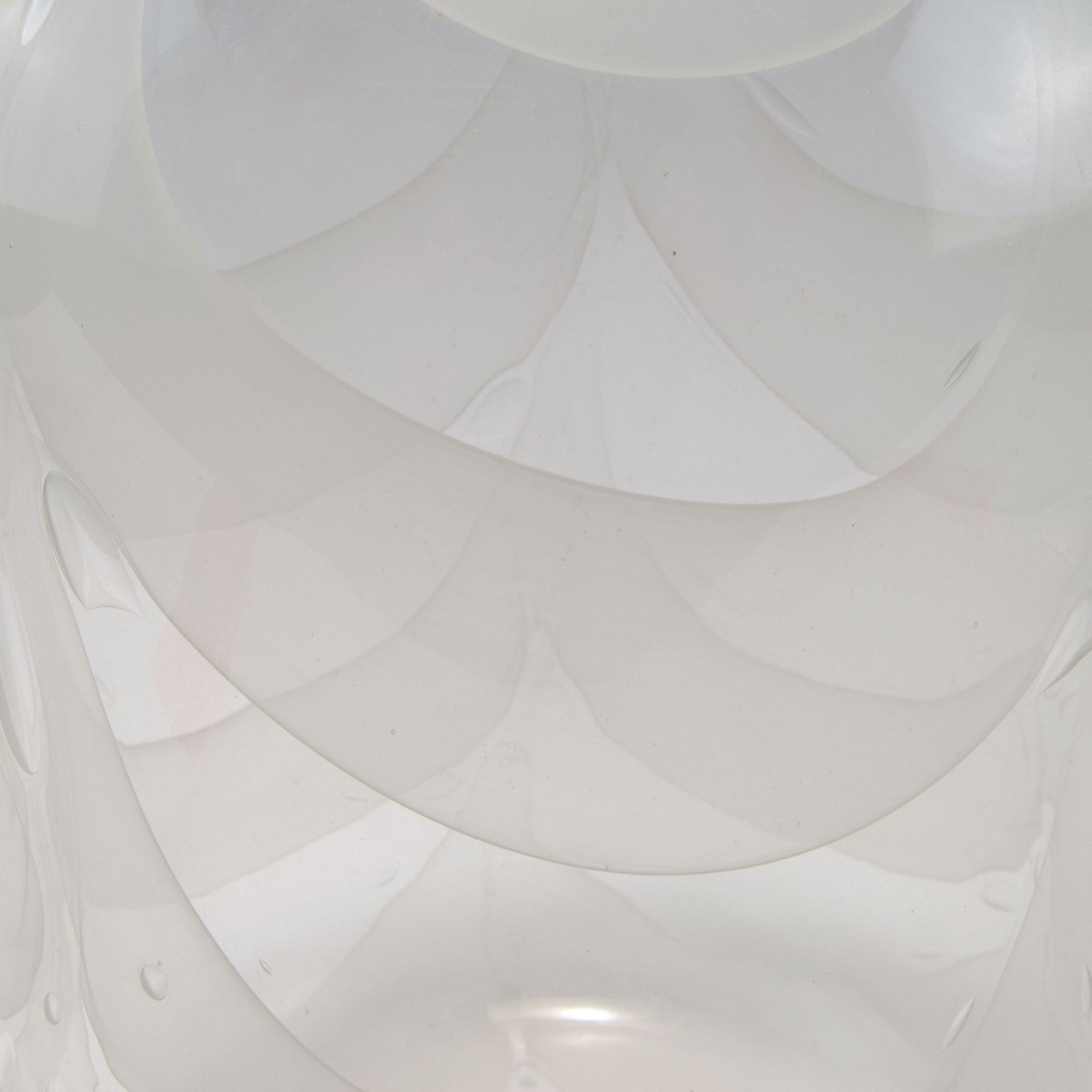 Zylindrisch mit abgesetzter Mündung. H. 32,3 cm. Ausführung: Barovier & Toso. Farbloses Überfangglas mit eingeschmolzenen gekämmten Bändern in schlierigem Opalweiß.