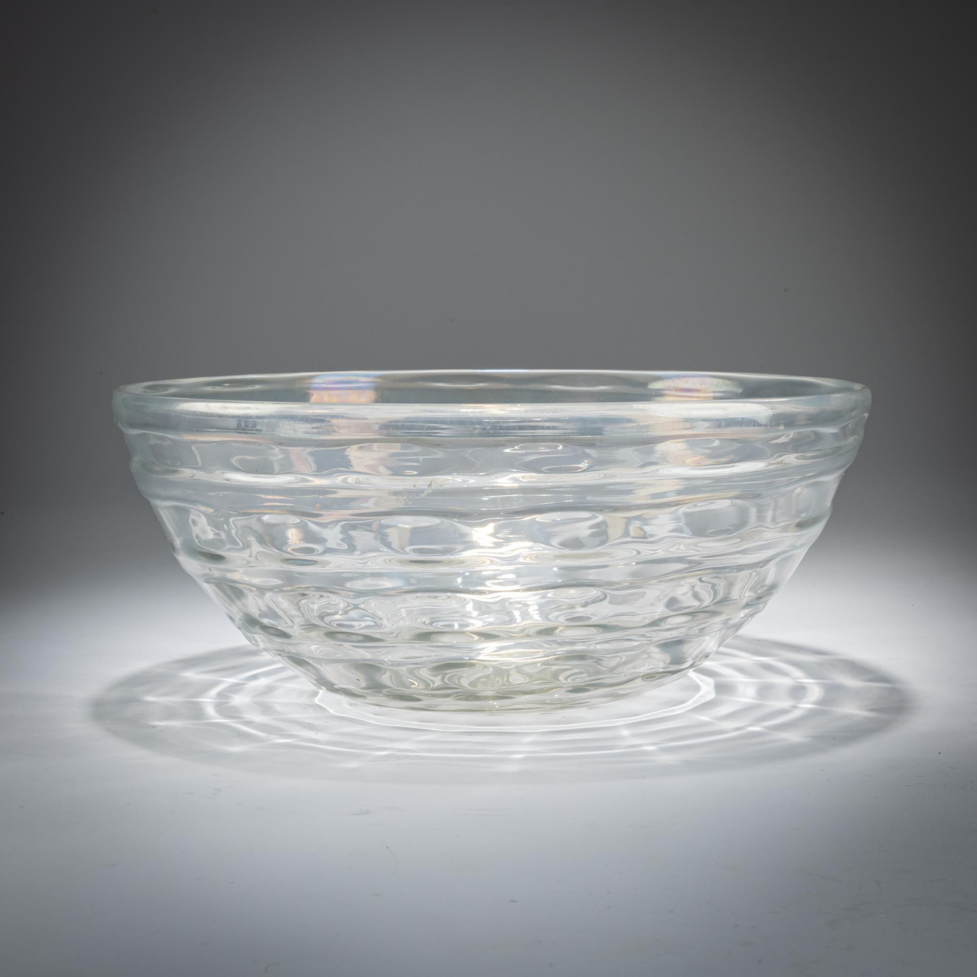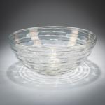 H. 10 cm; Ø 23,5 cm. Ausführung: Barovier & Toso. Farbloses Glas mit umlaufendem Band, irisiert.