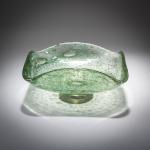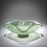 H. 9 cm 17,5 x 18,4 cm. Ausführung: Ferro Toso Barovier. Stark blasiges Überfangglas 'arabesco verde' farblos, grün, mit Avventurinpulver.
