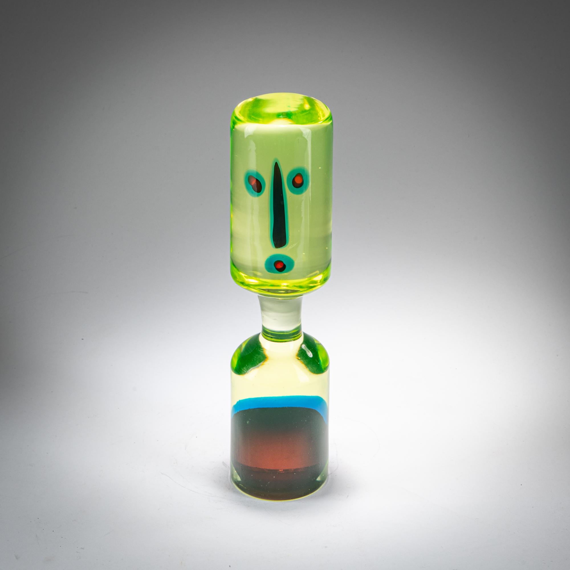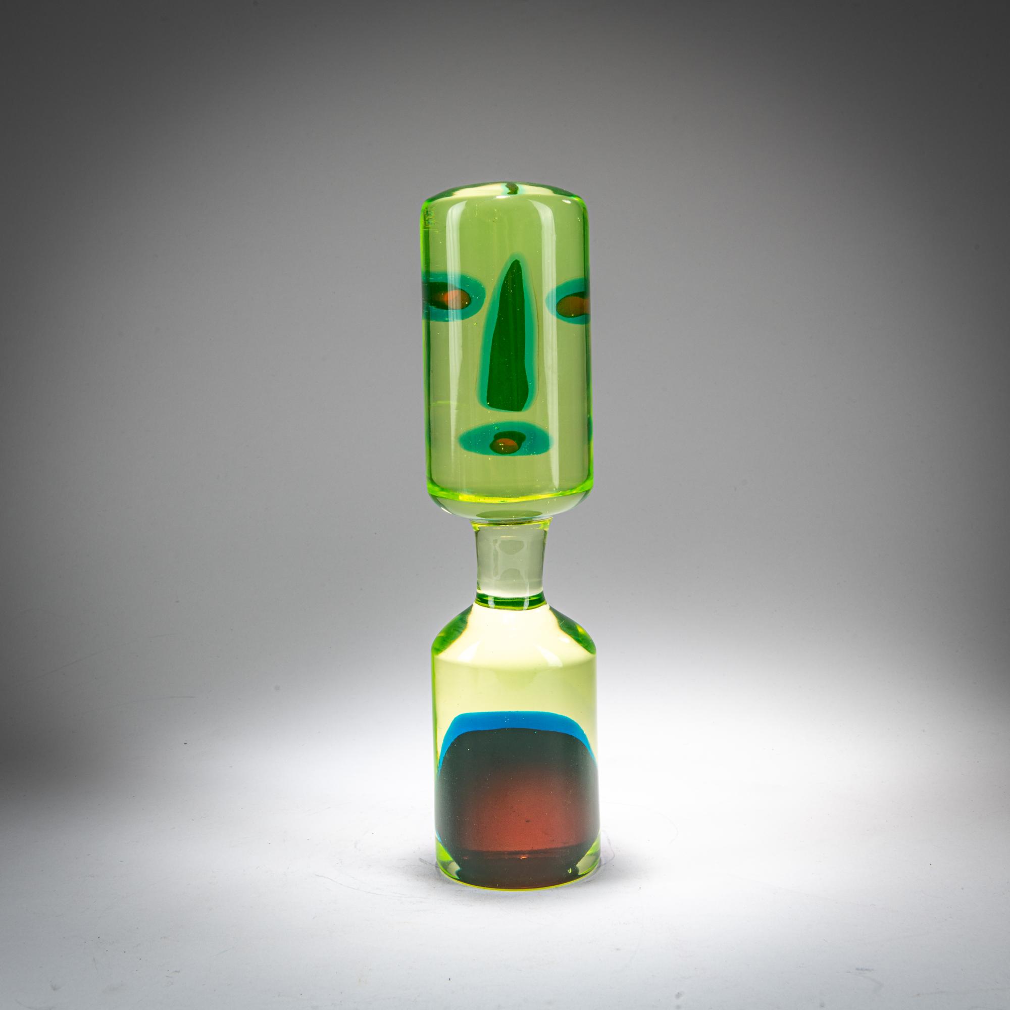 H. 28 cm. Ausführung: Gino Cendese. Überfangglas, farblos und gelb mit vielfarbigen Flecken.
