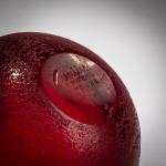 H. 5,2 cm; 8 x 8 cm. Ausführung: Venini. Überfangglas, farblos und rot, Oberfläche geätzt, eisglasartig strukturiert. Bez.: venini murano ITALIA (Ätzstempel).