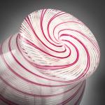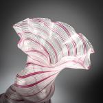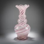 H. 38,5 cm. Ausführung: Aureliano Toso. Farbloses Glas mit aufgeschmolzenen Fäden in Weiß, teilweise rosa überfangen.