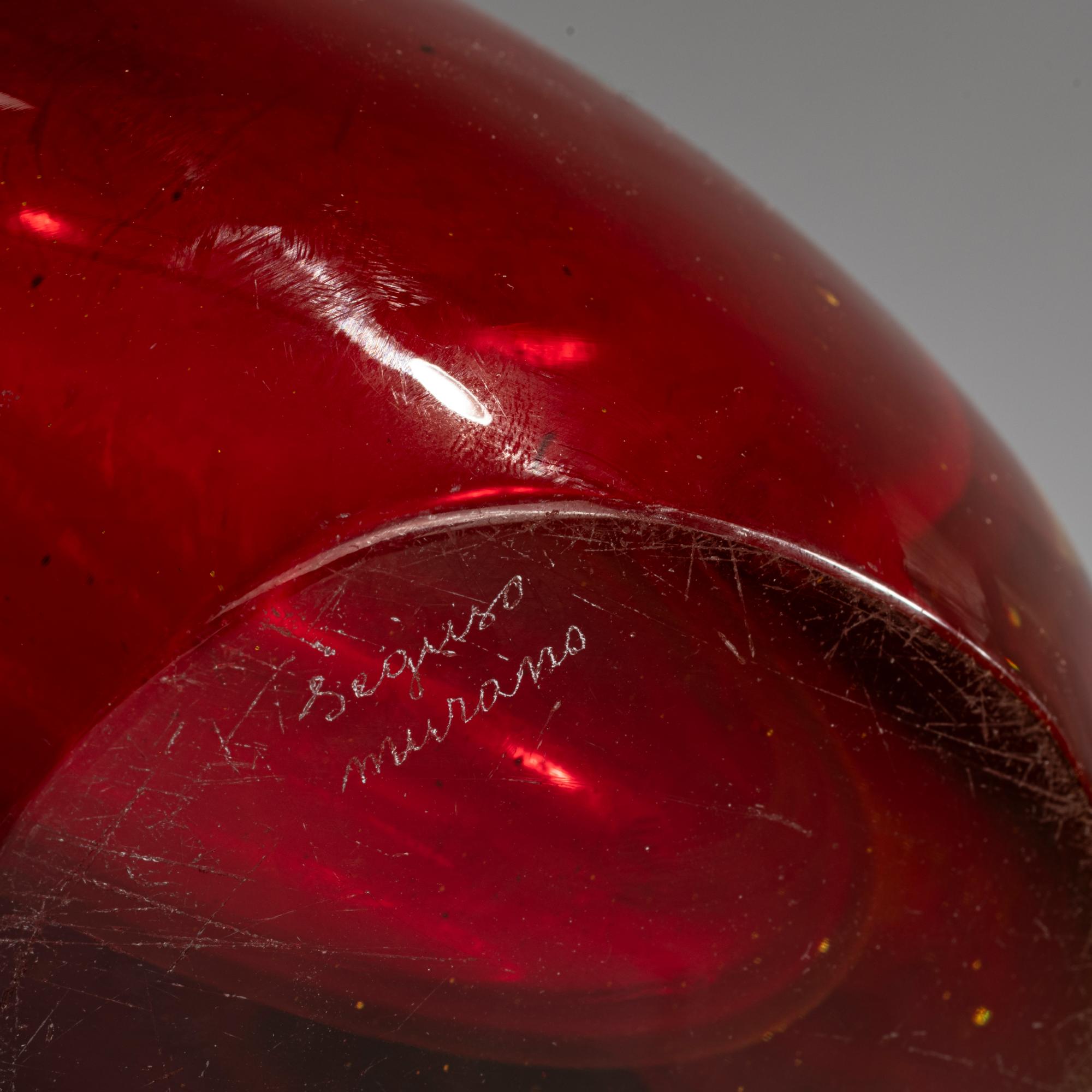 H. 32,3 cm. Ausführung: Seguso Vetri d'Arte. Überfangglas farblos, rubinrot, gelb. Am Boden bez.: seguso murano (graviert).