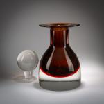 Modell-Nr. 13986. H. 30,5 cm. Ausführung: Seguso Vetri d'Arte. Überfangglas farblos, bernsteinfarben. Auf der Wandung bez.: Hersteller-Klebeetikett.