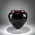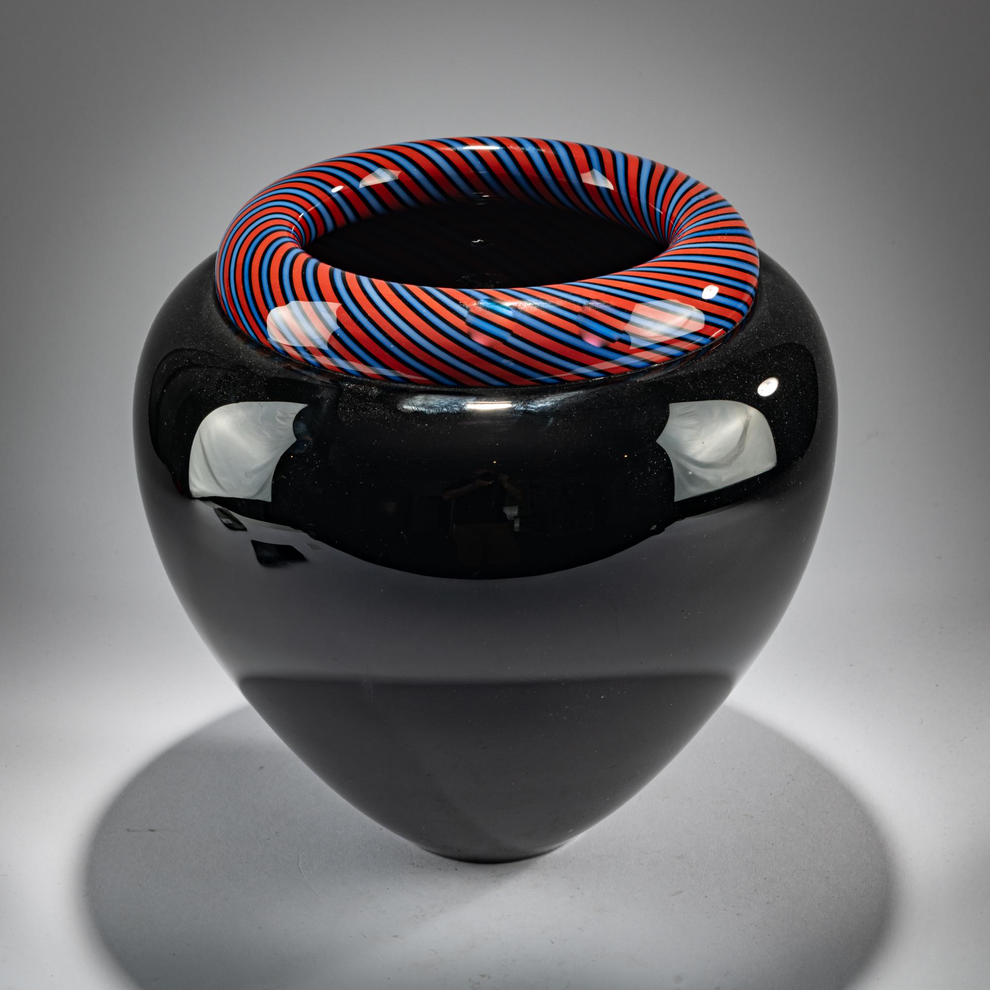 H. 30 cm. Ausführung: Effetre International. Überfangglas, farblos und schwarz, eingeschmolzene Bänder in Schwarz, Blau und Rot. Bez.: Lino Tagliapietra murano 1984 (diamantgerissen).