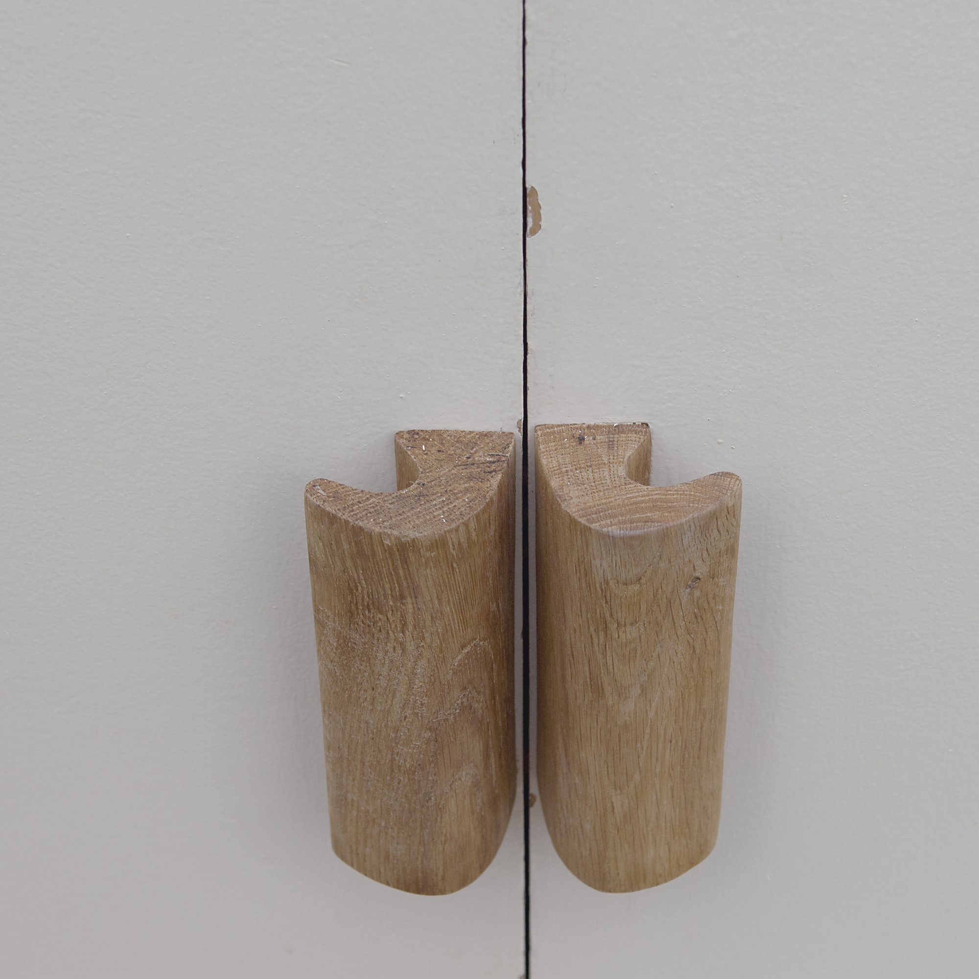 Le Corbusier. Large built-in cabinet from the 'Unité d'Habitation de Marseille', c1949. H. 214 x 339 x 70 cm. Made by ATBAT (Atelier des batisseurs); Barbaris cabinetmakers, Ajaccio (probably). Wooden construction, applied chipboard on parts inside and outside the cabinet, five hinged doors, veneered block board, painted white, applied handles of oak; four sliding doors, plywood, painted white, applied handles of oak; guide rail of hardwood. Compartments inside, painted white.