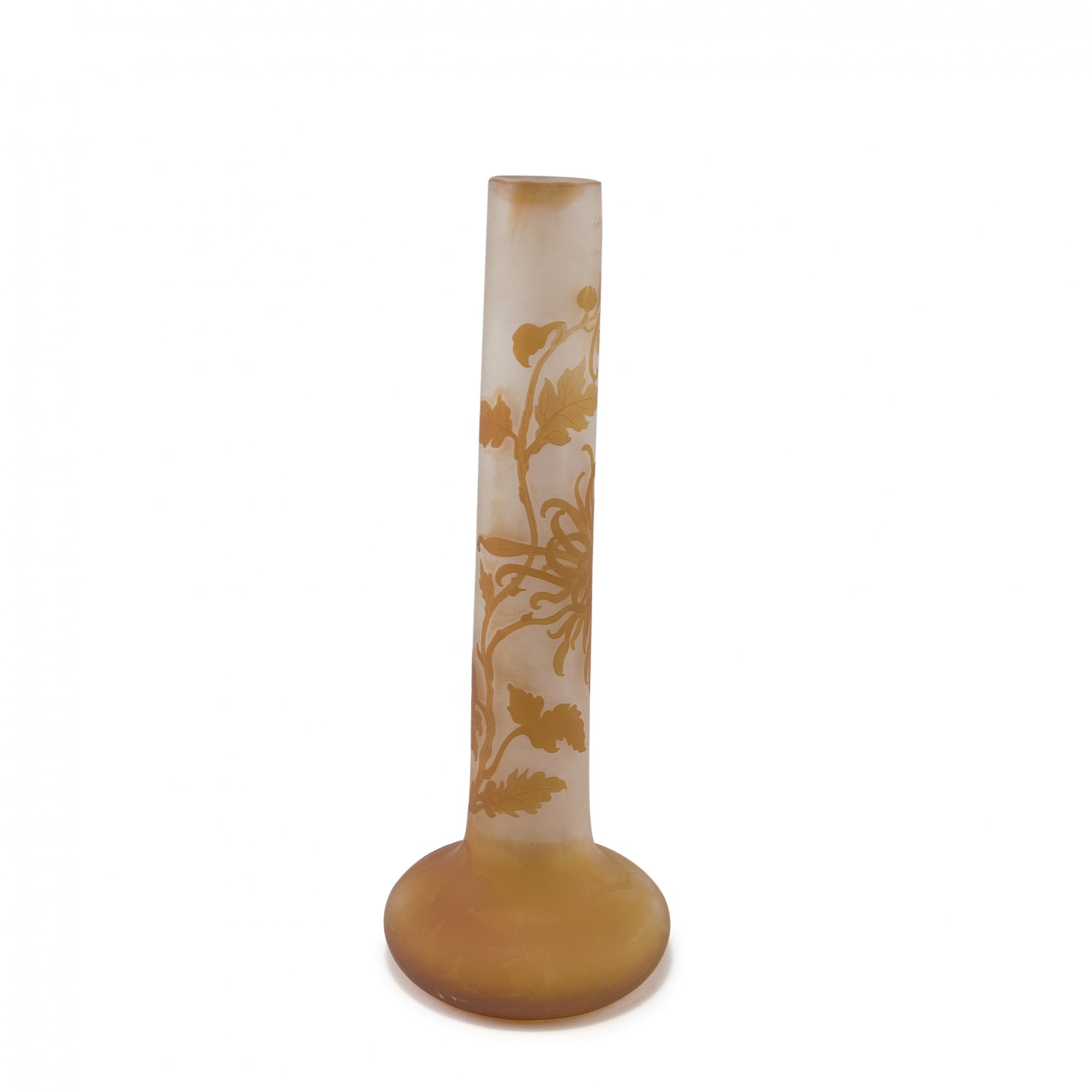 Emile Gallé, Nancy. Tall 'Chrysanthèmes' vase, 1902/03. H. 33.3 cm. Cased glass, milk white, clear and amber. Multiply etched pattern with chrysanthemum. Signed: GALLÉ.