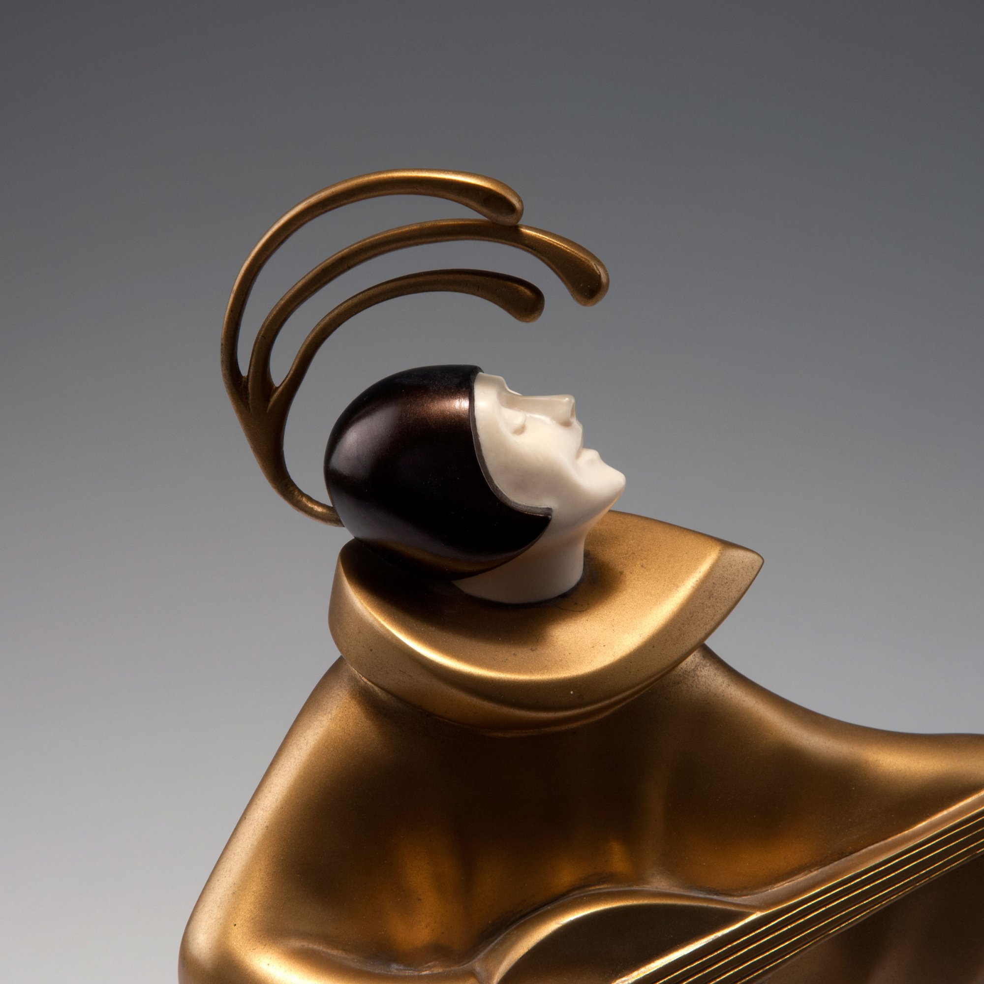 Roland Paris. Two Dancers disguised as Beetles, c1920. H. 32.2-35 cm. Made by Ernst Krass, Berlin. Gilded bronze, headdresses with dark patina. Face and hands of carved ivory. Marked: Roland Paris, founder's mark.