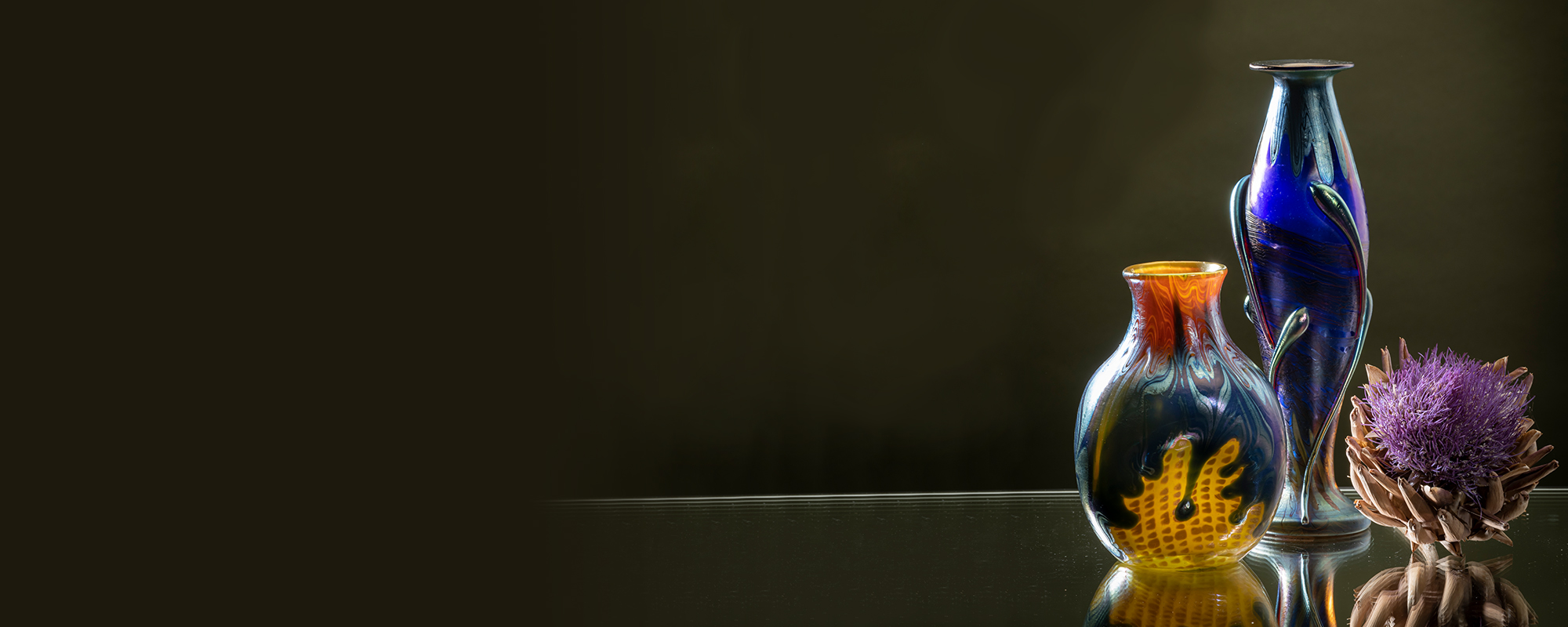 The American Louis C. Tiffany had a great influence on the international Art Nouveau movement. A tall goblet from 1907 stems from his pen and is being offered for €5,000 - 6,000. Again, a table light by Tiffany with a swiveling shade in cut 'Favrile' glass from 1918 will be auctioned at the same price. Bohemian glassmakers were particularly inspired by Tiffany's lustered glass vases, above all the Lötz manufactory. Here a blue baluster vase with six applied drops, that Loetz presented at the World Exhibition in Paris in 1900, leads the offer - estimate: € 9,000 - 12,000.