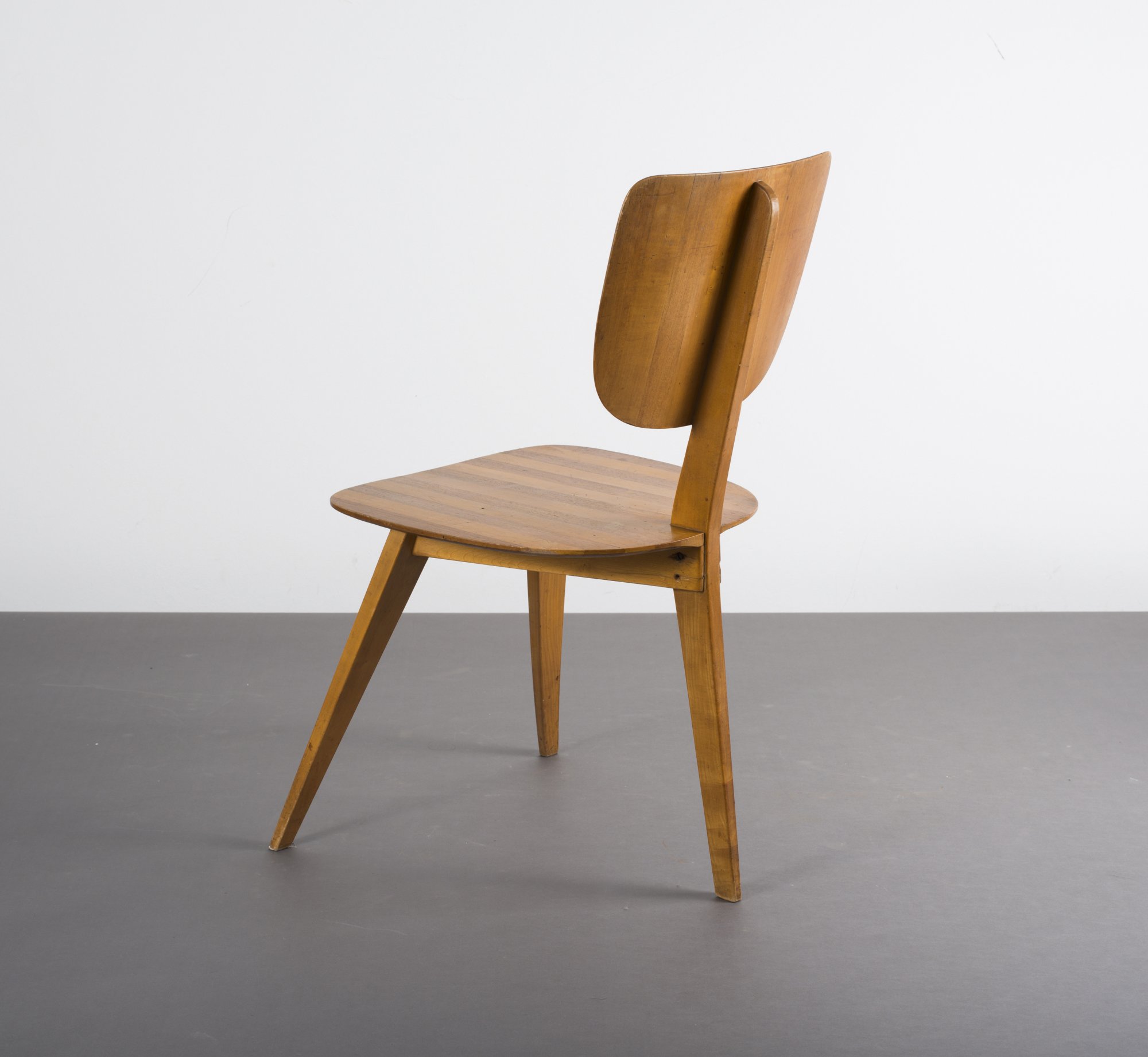 Helmut Magg. Three-legged chair, c1953. H. 83 x 48.5 x 55 cm. Made by WK-Möbel, Stuttgart. Nut, maple.