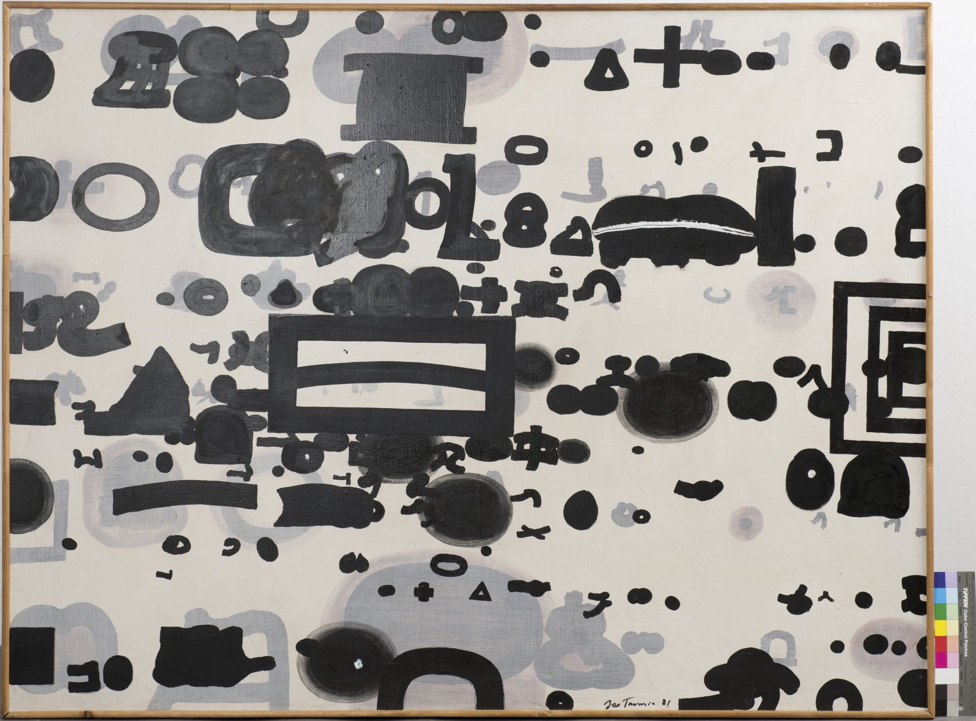 Jan Tarasin. 'Sytuacja II', 1981. 100.0 x 130.0 cm. Oil on canvas. Signed: Jan Tarasin (19)81. Verso: Jan Tarasin (19)81, titled: Sytuacja II. Label of 'Centraline Biuro Wystow Artystycznyck', Warsaw.