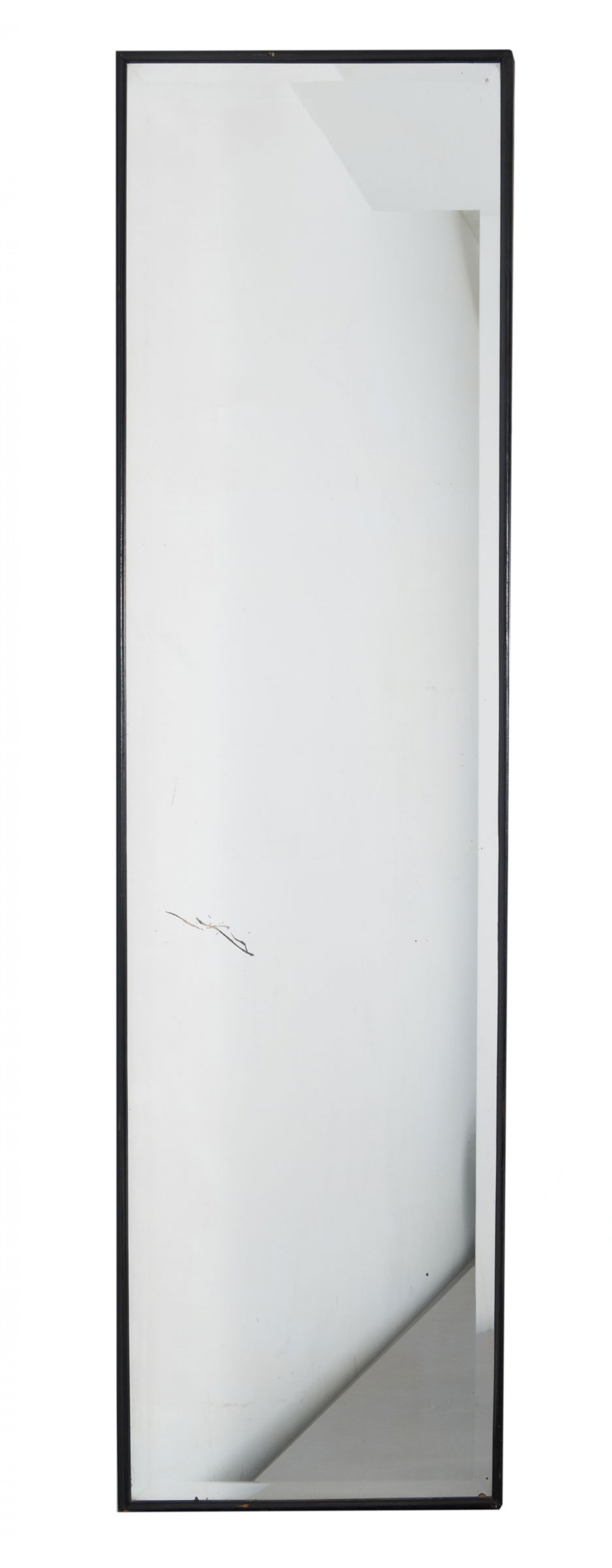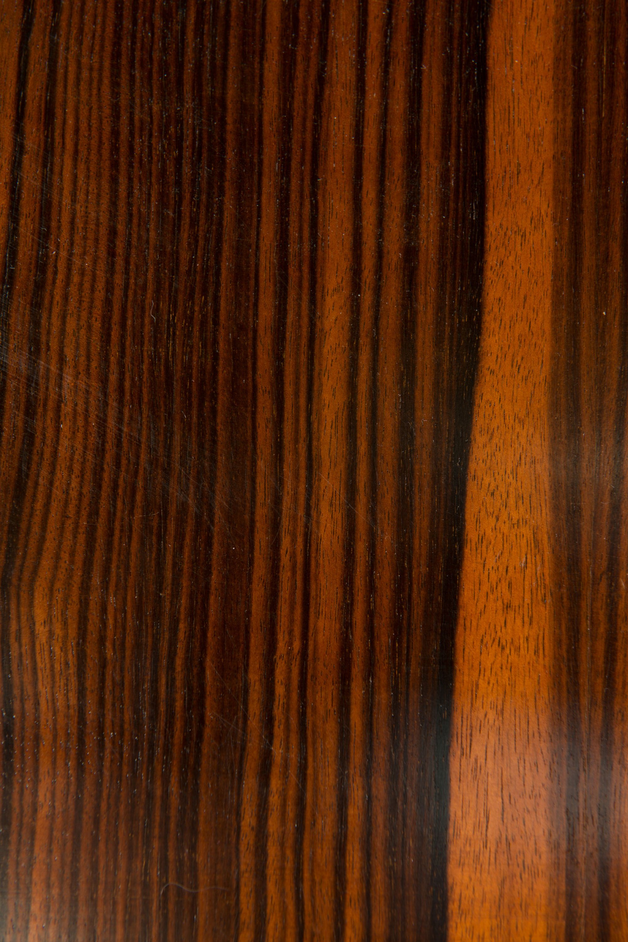 Cesare Scoccimarro. Console table and mirror, 1930s. Table: H. 73 x 195 x 29 cm; mirror: H. 173.5 x 47 x 4 cm. Wooden construction, maccassar veneer, nickel-plated tubular steel, wooden frame, painted black, plate glass.