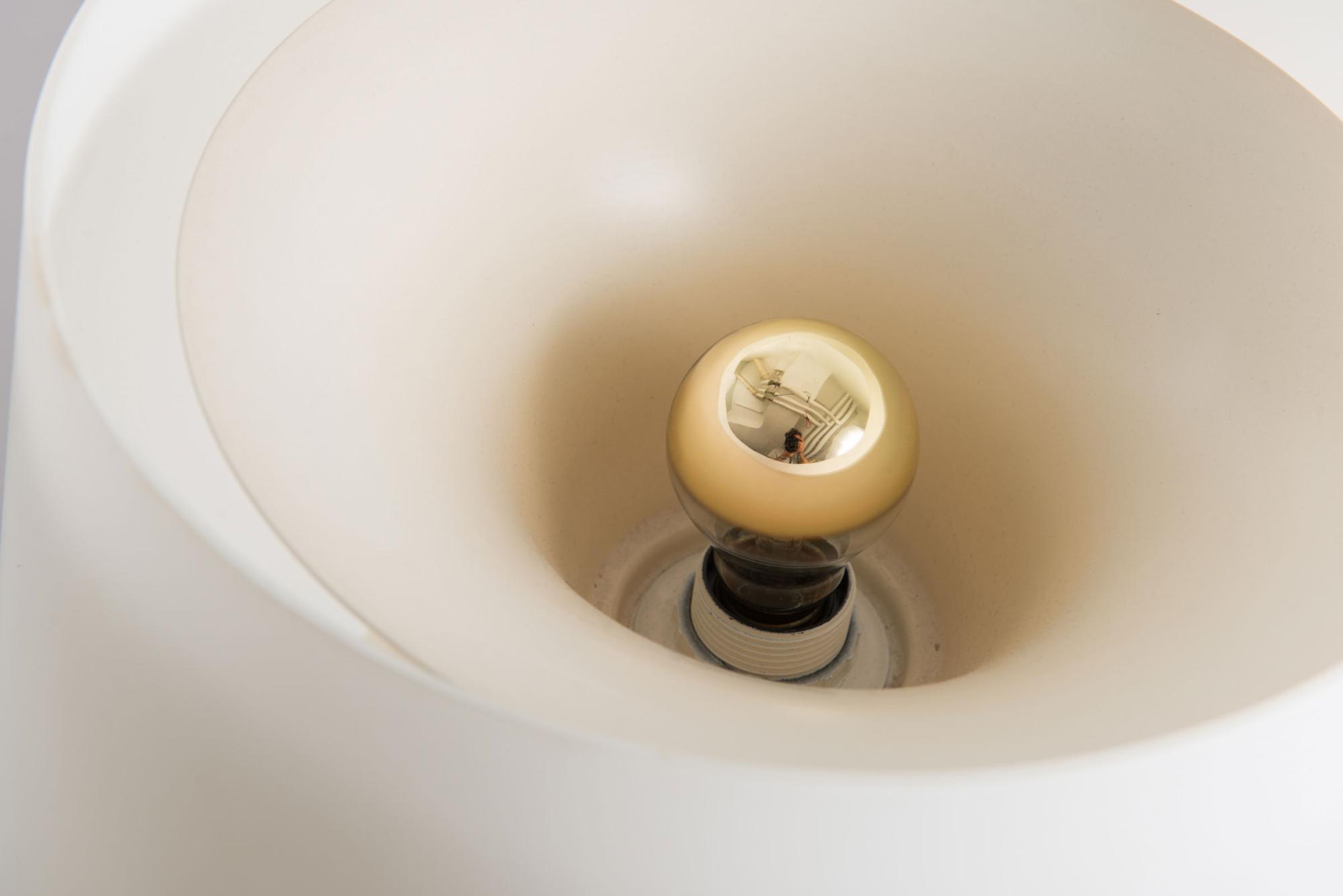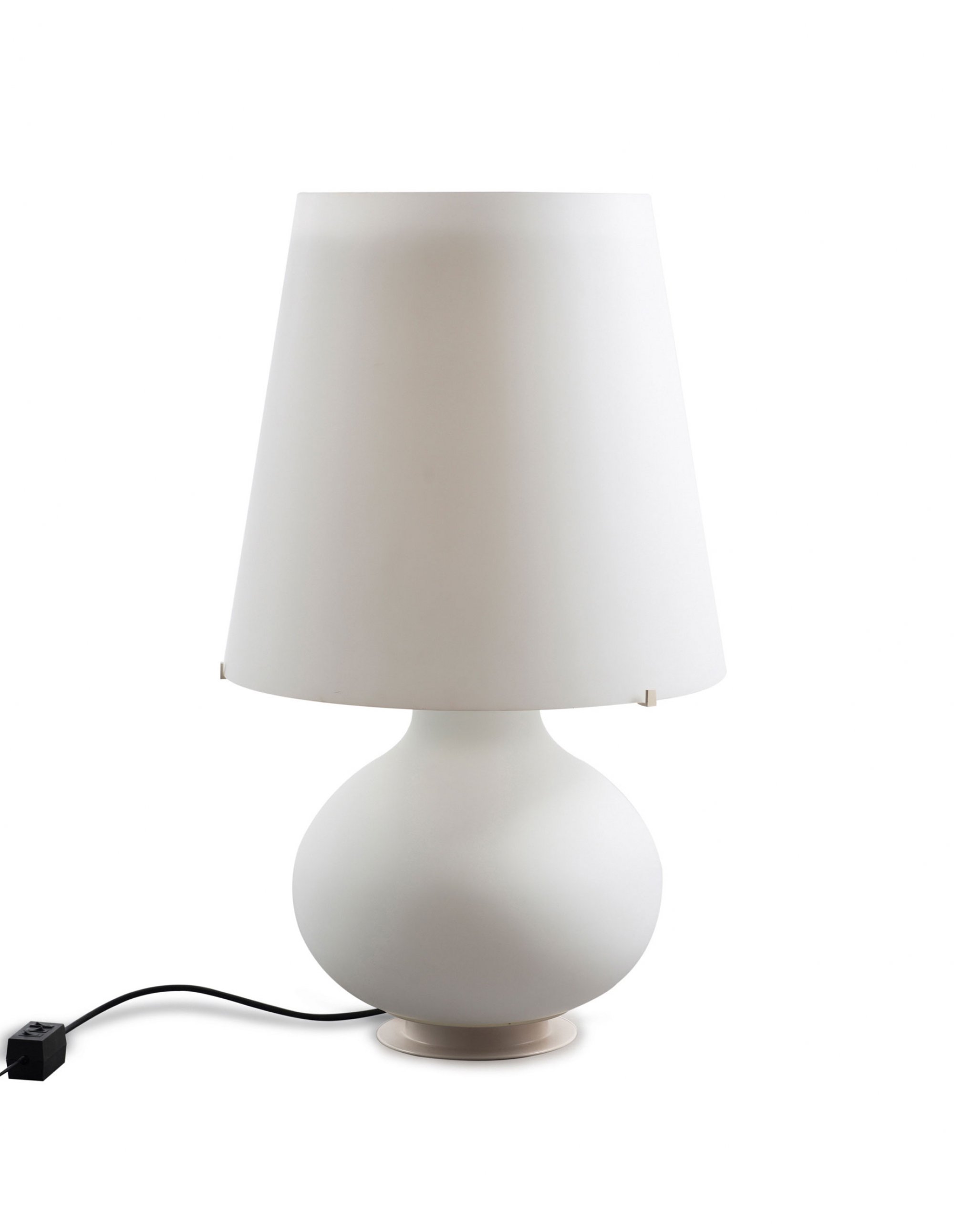 Max Ingrand. '1853 grande' table light, 1954. H. 79 cm, D. 46.5 cm. Made by Fontana Arte, Milan. Sandblasted mouth-blown glass, sheet metal, painted white.