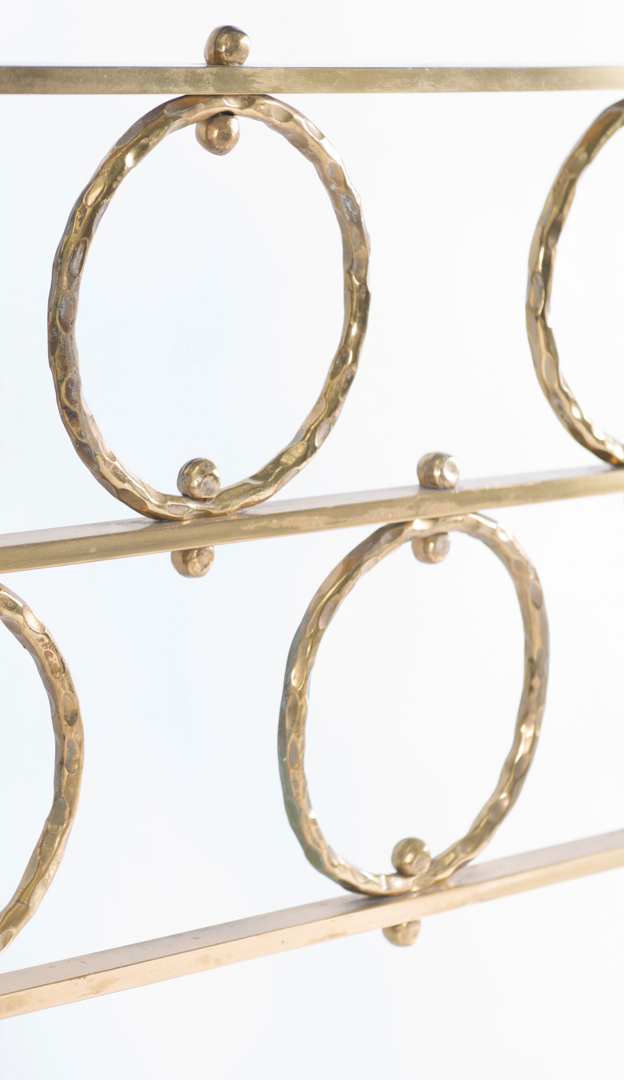 Osvaldo Borsani; Arnaldo Pomodoro (attributed). Bed, c1958. H. 113.5 x 186 x 210 cm. Made by Borsani Arredamenti, Varedo Milan (attributed). Metal, lacquered white, brass, cast bronze.