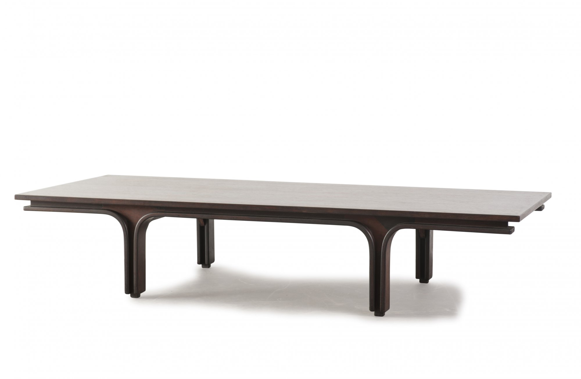 Gianfranco Frattini. '522' bench/coffee table, 1960. H. 28 x 140 x 53 cm. Made by Bernini, Carate Brianza. Plywood, rosewood veneer, part bent. Marked: Maker's decal.