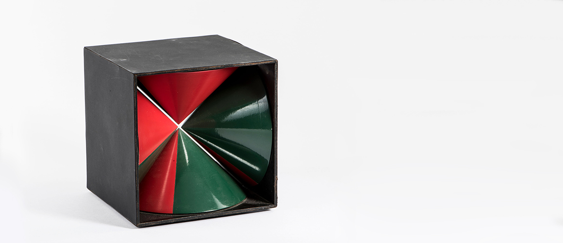 Enzo Mari began his serial work when he was still a student at the Milan Art Academy. In the late 1950s, he explored the possibilities of spatial experience under changing light conditions and different viewer perspectives through creating three-dimensional objects which he exhibited at 'Arte programmata' in 1962 and the 'New Tendencies' exhibition in Zagreb in 1963. The Mieke and Jan Teunen collection includes the outstanding art object 'Quattro spirali' (lot 10) and a multiple with the title 'Oggetto a composizione autocondotta' (lot 13), as well as spherical and cubic objects made of synthetic resin (lots 14–22). In his designs for everyday objects such as the containers 'Citera' (lots 25–29) or the penholder 'Malta' (lot 24), Enzo Mari followed the credo of creating objects with shapes that appear as simple as possible and whose technique and function adheres to an elemental formal system.