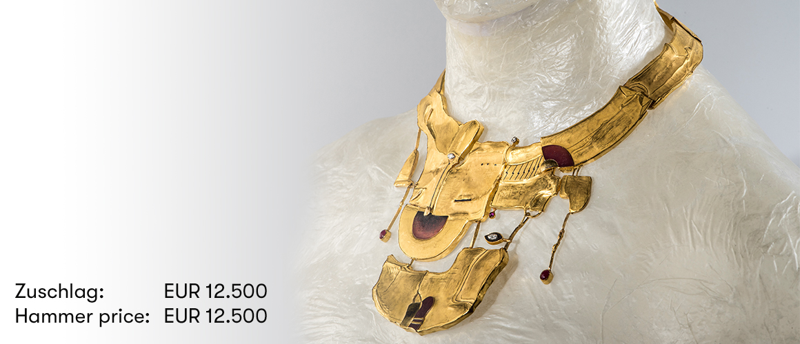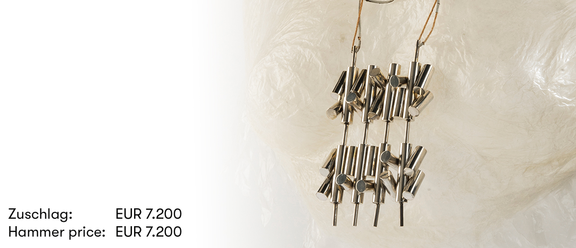 All in all, 42 objects by award-winning gold- and silversmiths are present. They are of great importance for the development of the modern-day jewelry design and artist jewelry in Germany. The collector, who chose the works with the utmost care, acquired all but a few pieces directly from the artists themselves. Among the highlights of the offer are works by Hermann Jünger and Klaus Ullrich. Othmar Zschaler, Ebbe Weiss-Weingart and Jens Rüdiger Lorenzen are among the other important personalities that influenced the German artist jewelry design.