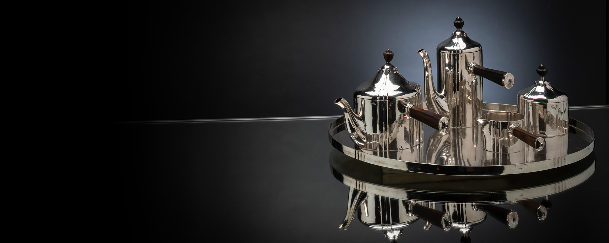 Art Nouveau was an international movement with great aesthetic similarities, but also regional characteristics. In the first chapter, for example, we focus on Art Nouveau of German-based artists and thus present a number of works by Belgian Henry van de Velde who had his greatest success as an architect and interior designer in Germany. Like van de Velde, Dutch designer Johannes Lauweriks was repeatedly commissioned and promoted by renowned collector Karl-Ernst Osthaus. Several silver pieces in this auction, some of them highly significant, come - like van de Velde's furniture - from the Colsman family, related by marriage to Osthaus. The silver coffee and tea service by the most important Viennese protagonist of this era stems from the same provenance. Josef Hoffmann designed it around 1920 - the rare set is clearly visible in a contemporary photograph of the Colsman family, sitting on a table in the foreground (see p. 30). In the Bauhaus chapter, we offer the first version of the extremely rare slatted chair with square wooden legs by Marcel Breuer. It is the twin piece to the one we auctioned on June 29, 2021. Also one of Marianne Brandt's first works was created in the metal workshop at Bauhaus Weimar in 1924. Made only of cylinders and circles, the bronze and nickel silver tipping ashtray follows the ideals of Bauhaus form master Laszlo Moholy-Nagy.