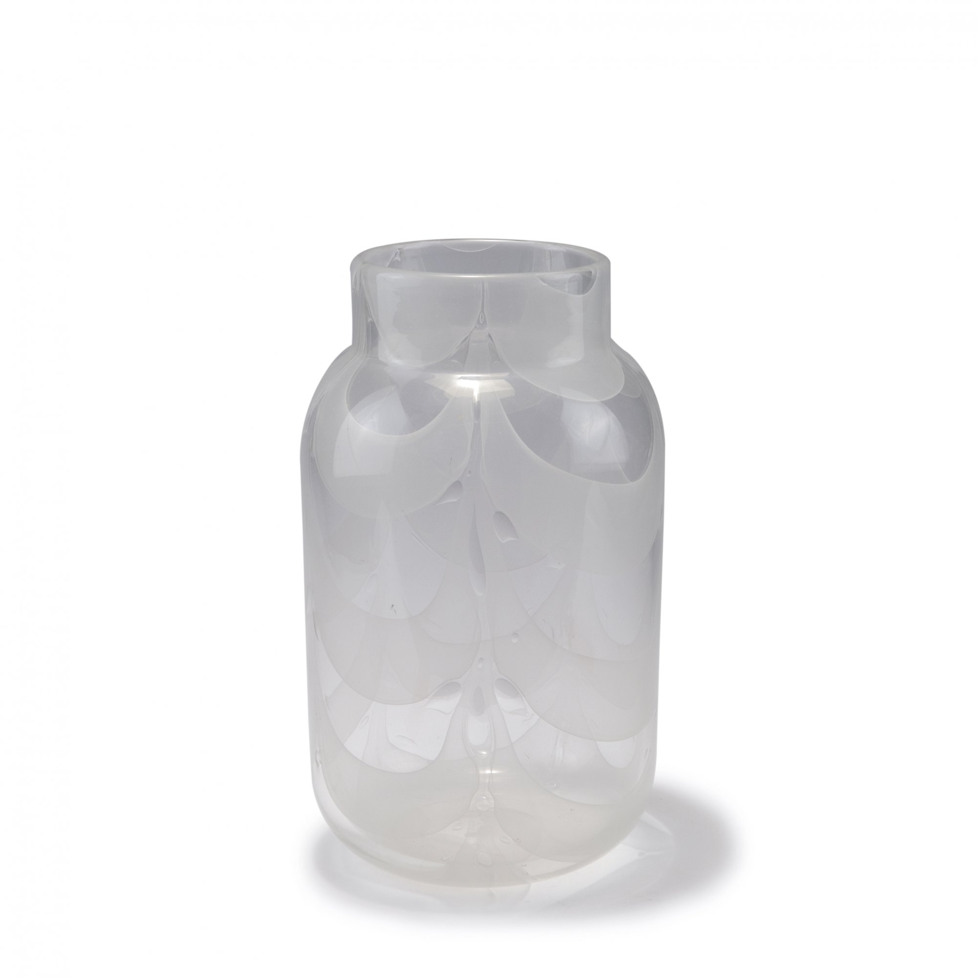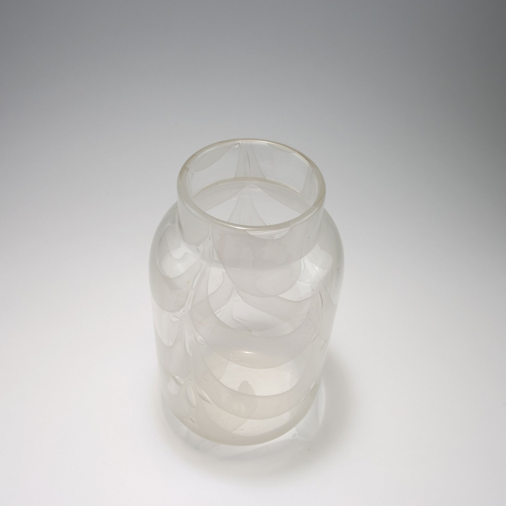Ercole Barovier. 'Graffito' vase, 1970s. H. 32.3 cm. Made by Barovier & Toso. Clear cased glass, included ribbons, opal white.