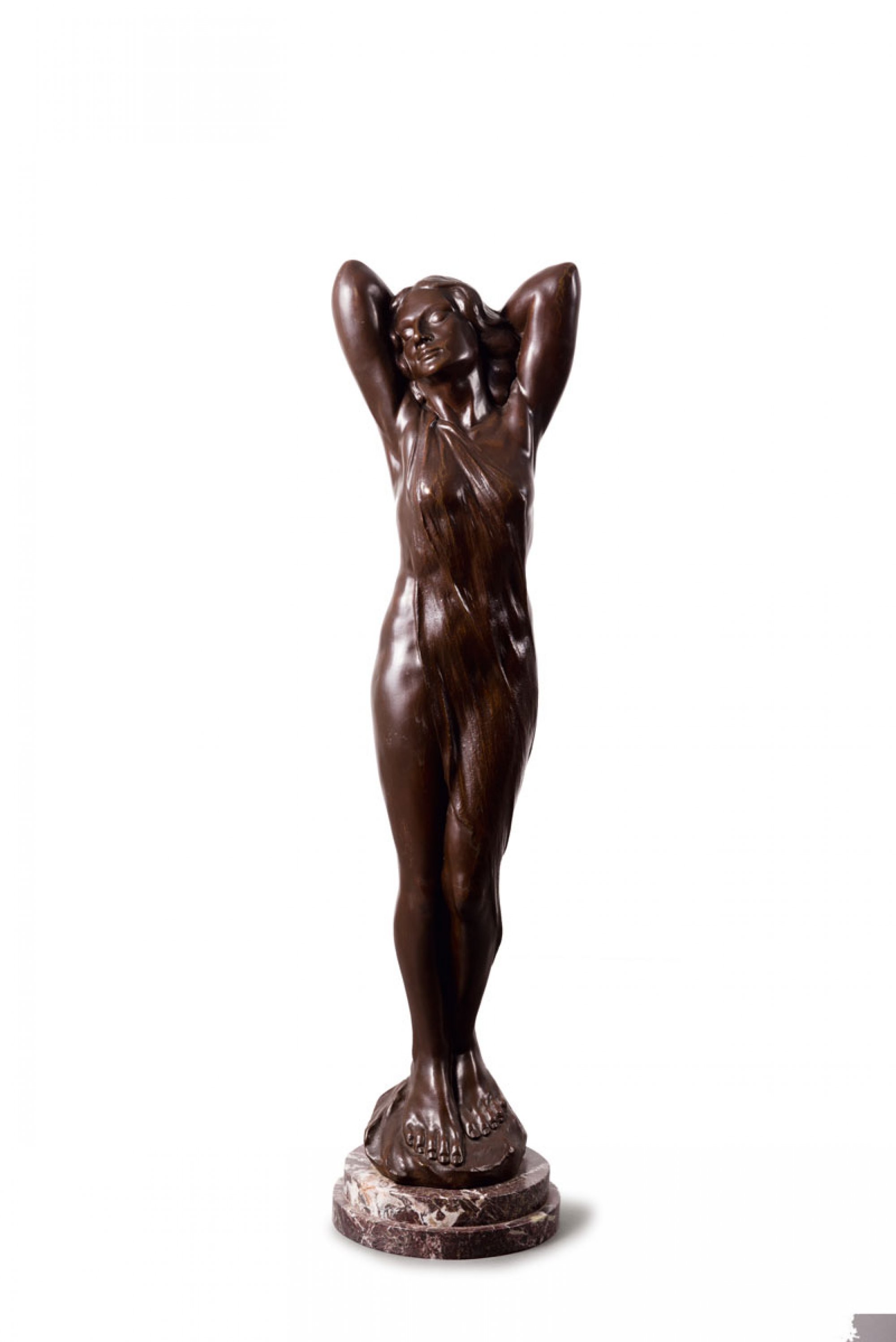 S. Norgg. Bather, c1900. H. 96.6 cm. Bronze, dark patina, black/grey marble base. Plinth marked: S. Norgg.