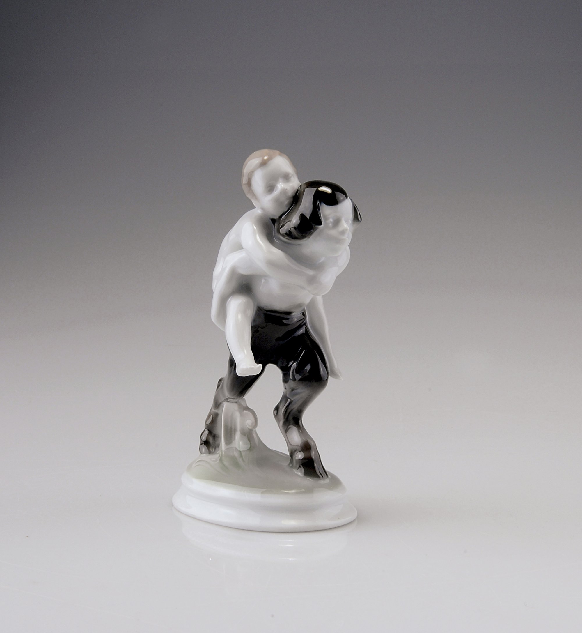 Rosenthal, Selb. 'Faunflucht' 1913. H. 13.3 cm. Designed by Albert Caasmann. Made in 1928. Porcelain, white, glazed, underglaze, green and brown. Marked: A. Caasmann, maker's mark, 11.