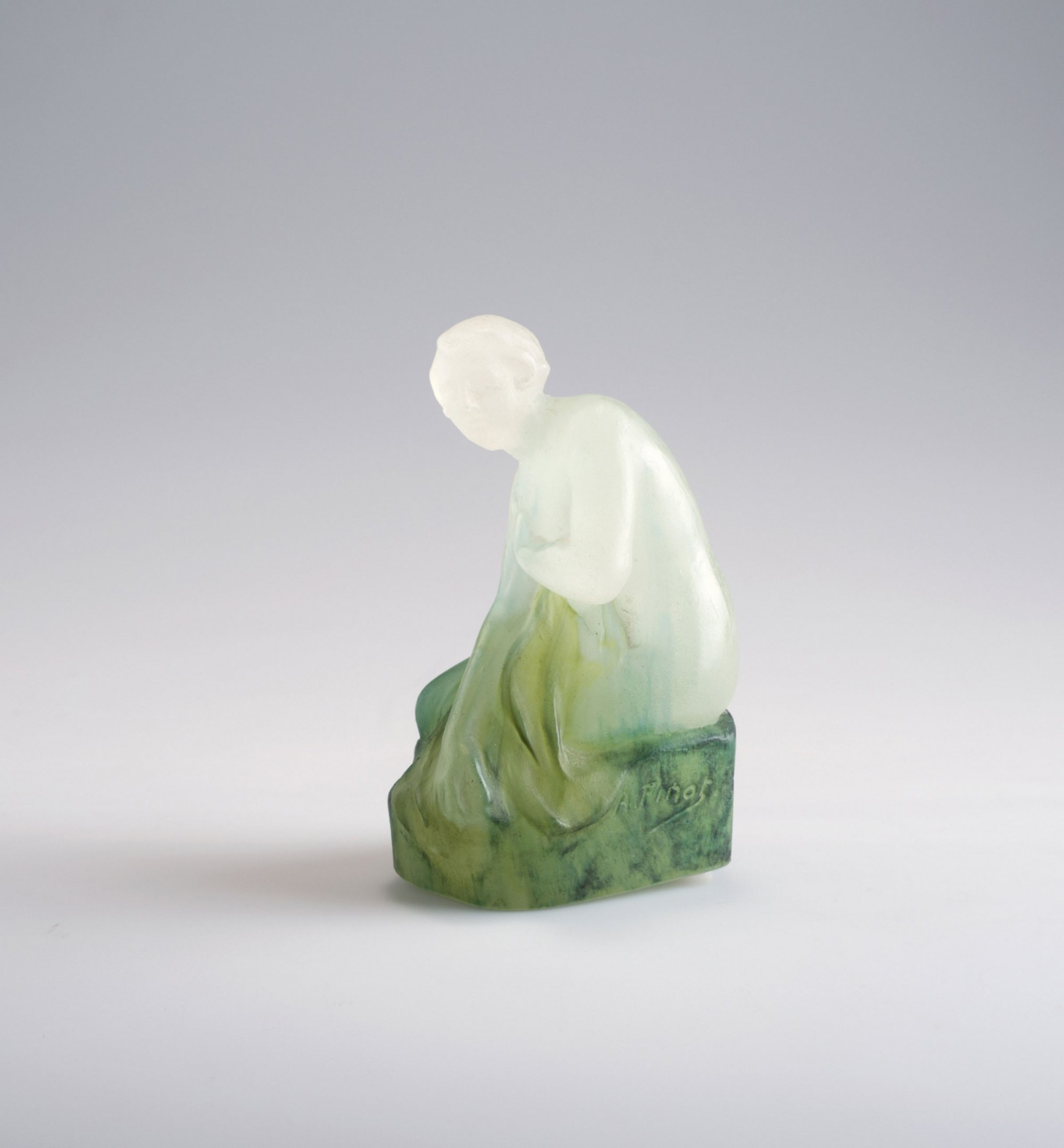 Amalric Walter, Nancy. Bather, 1920s. H. 14 cm. Designed by Alfred Finot. Pâte de verre, translucid gather, moulded, clear/greenish. Signed: AWALTER NANCY, A. Finot.
