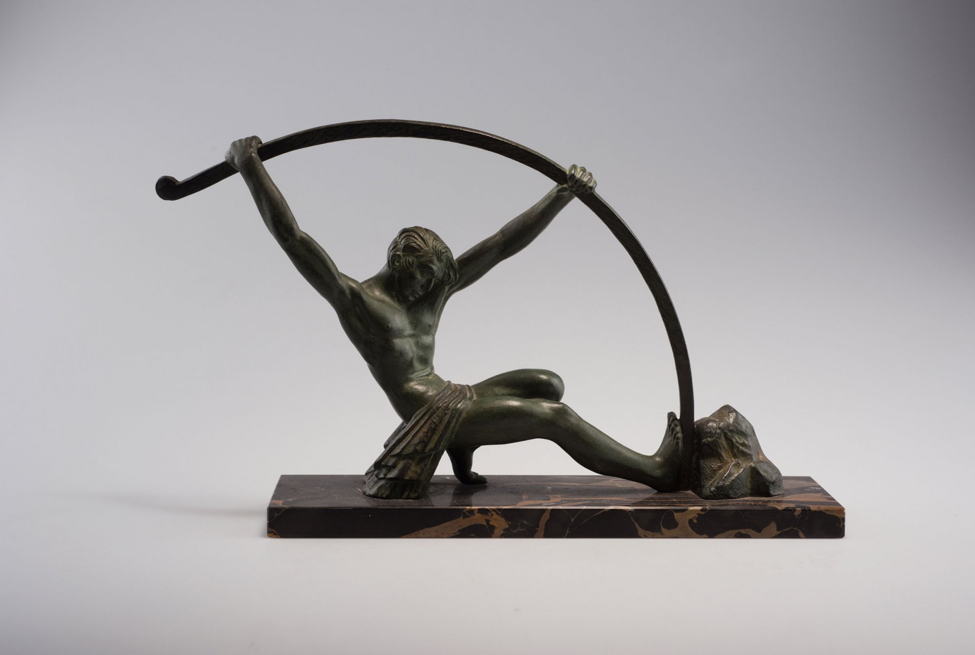 Demètre H. Chiparus. 'L'age du bronze', c1928. H. 23 cm. Cast metal, green patina, base of black/brown marble. Base signed: D. H. Chiparus.