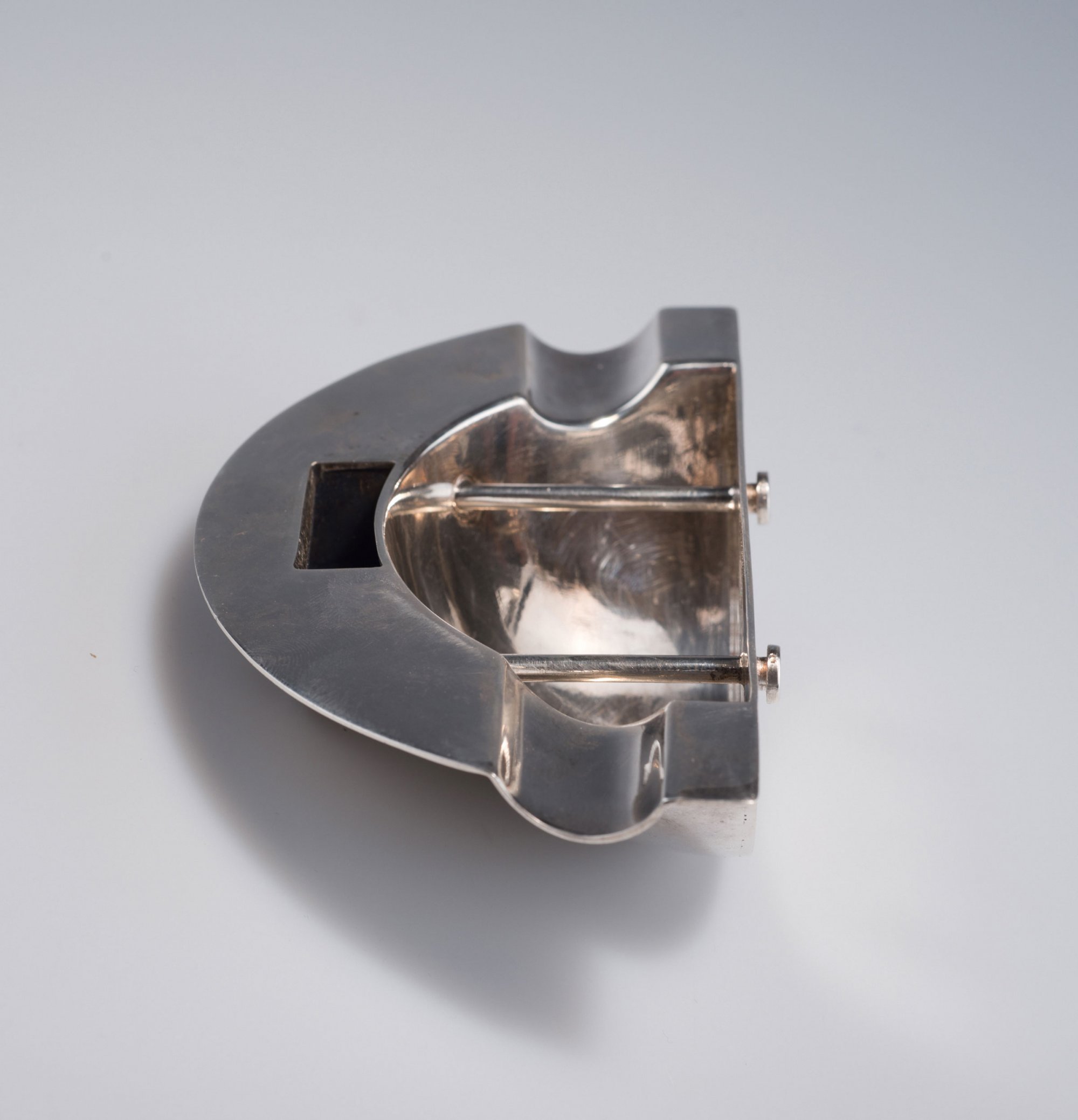 Desny, Paris. Ashtray for wall fastening, c1928. H. 4.9 cm; 16 x 8.9 cm. Chrome-plated metal. Marked: DESNY PARIS DEPOSE MADE IN FRANCE.