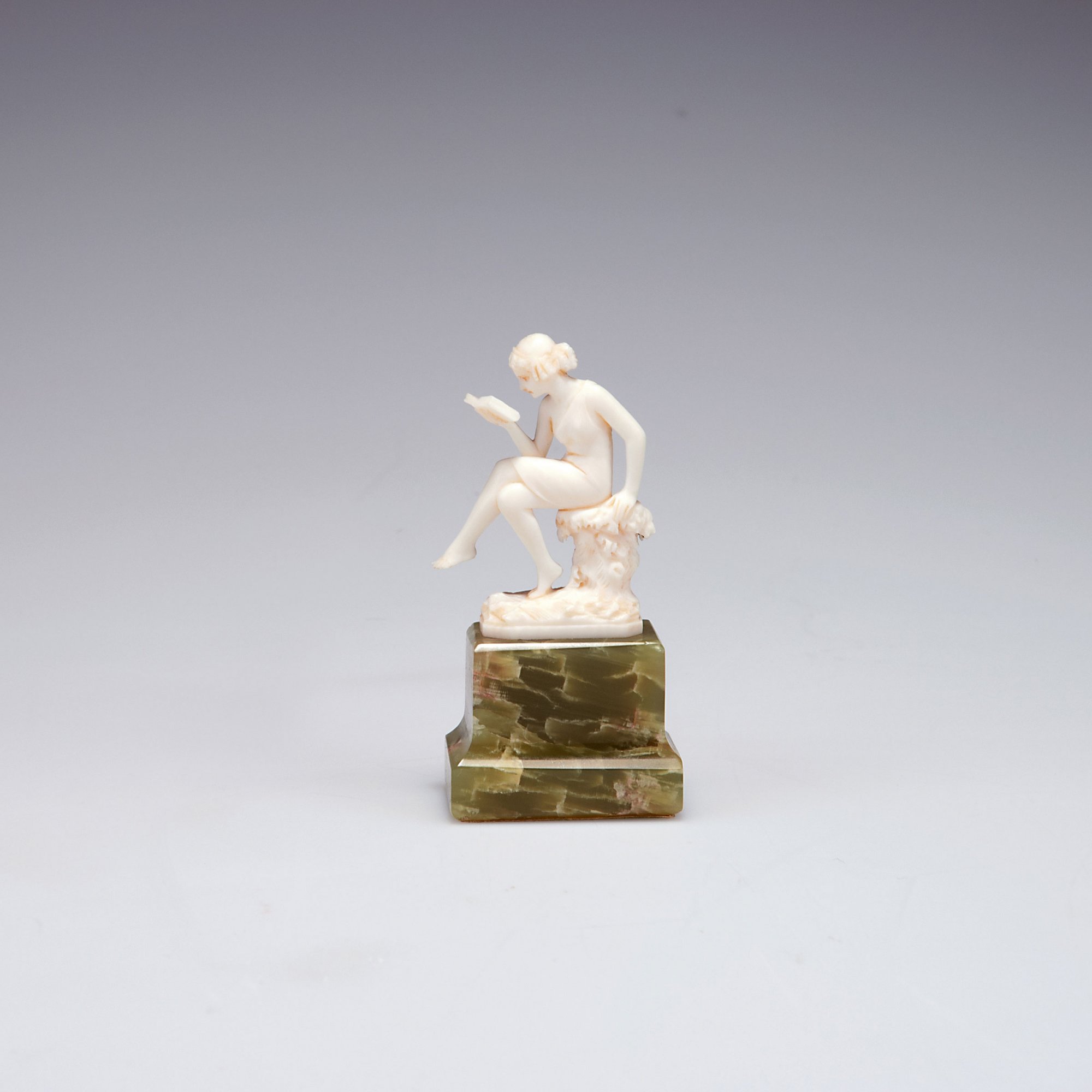 Ferdinand Preiss. 'Reader', c1920. H. 8.2 cm. Carved ivory, green onyx.