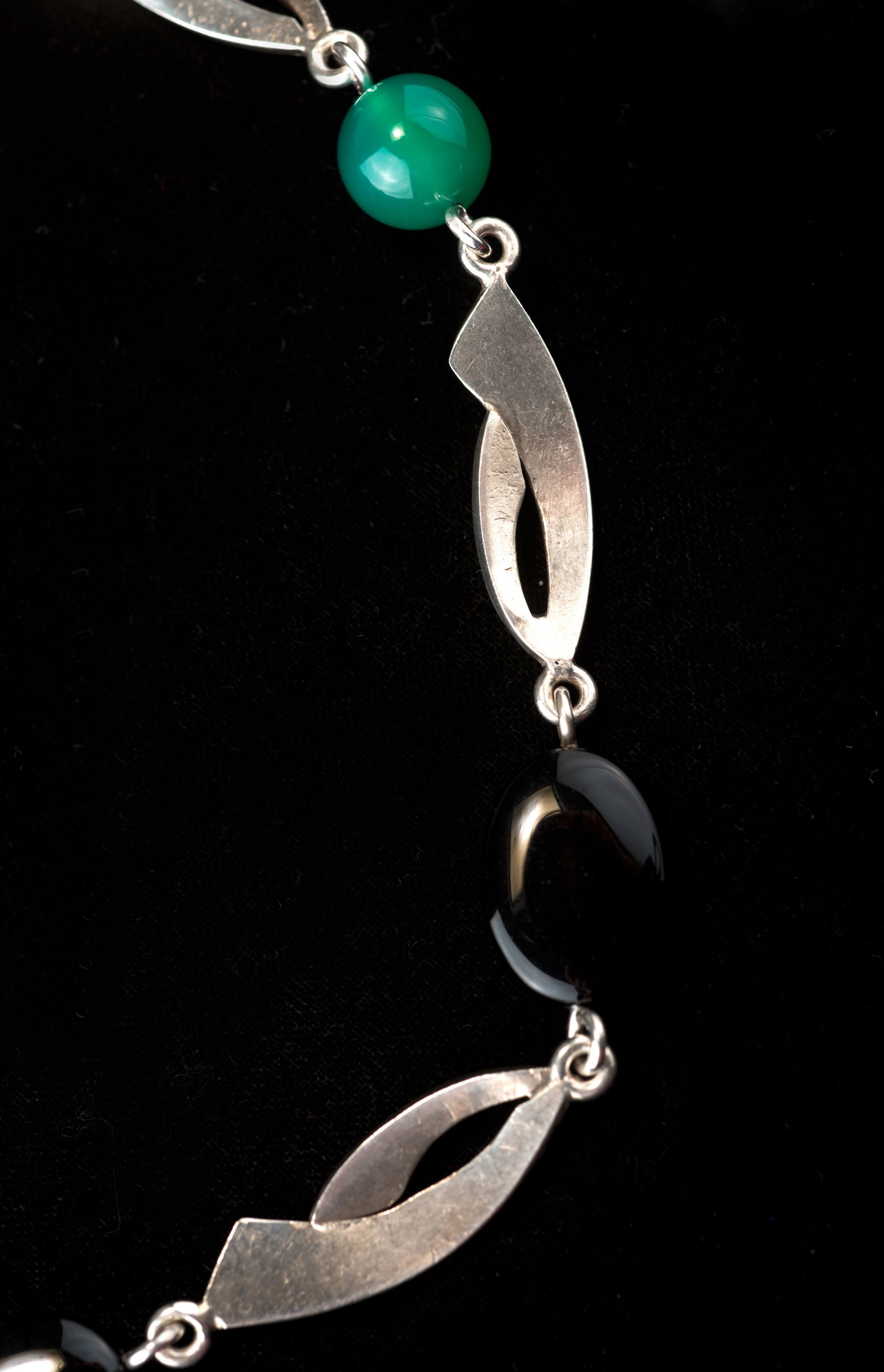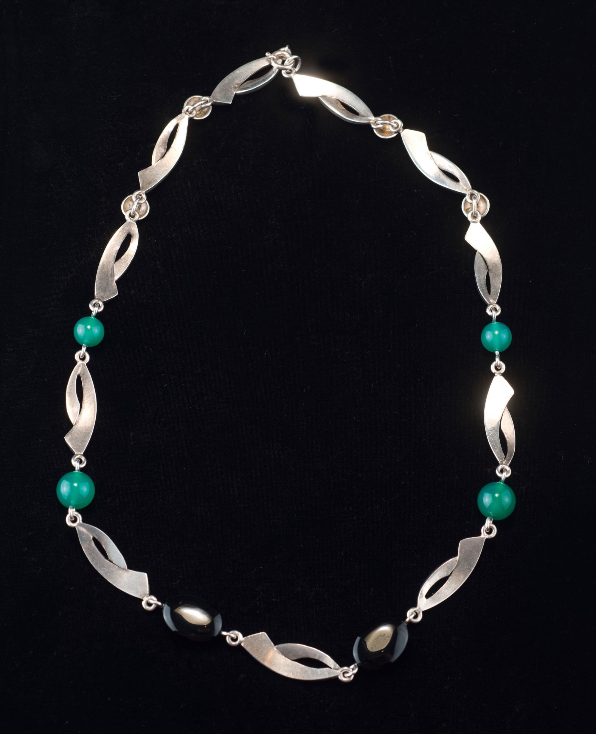 France. Necklace, 1930s. L. 53 cm. Silver, chrysoprases, onyx.