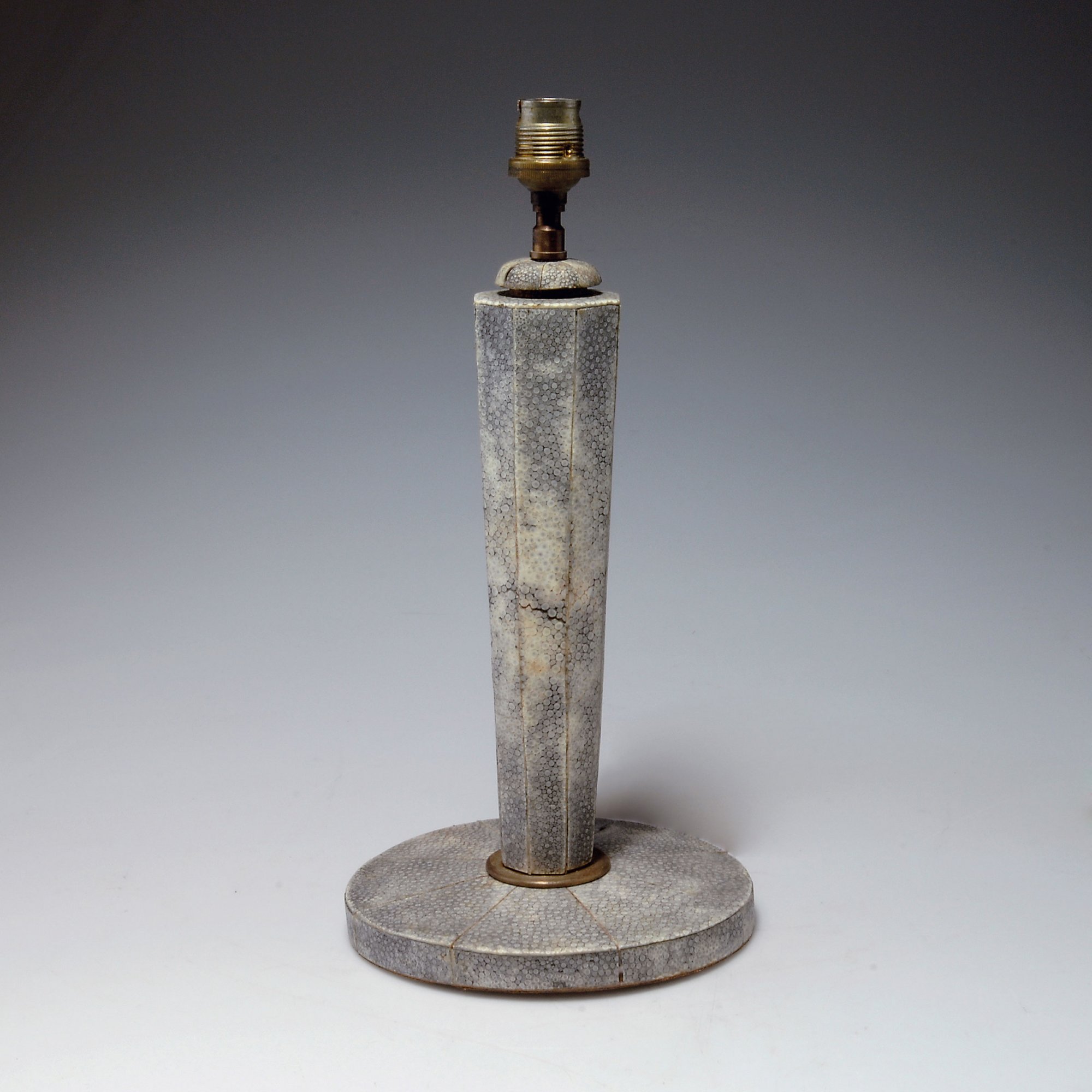 France. Lamp base, c1928. H. 32.8 cm. Wood, coated with ray skin (galuchat), brass.