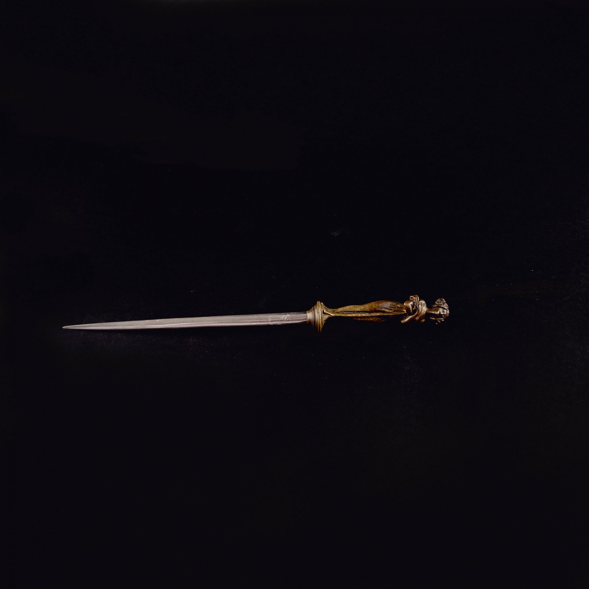 France. 'Girl' paper knife, c1900. L. 24.8 cm. Bronze and silver-plated metal.