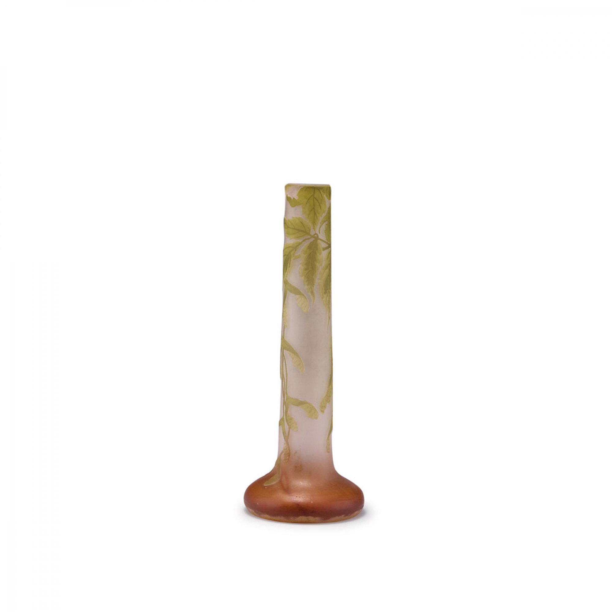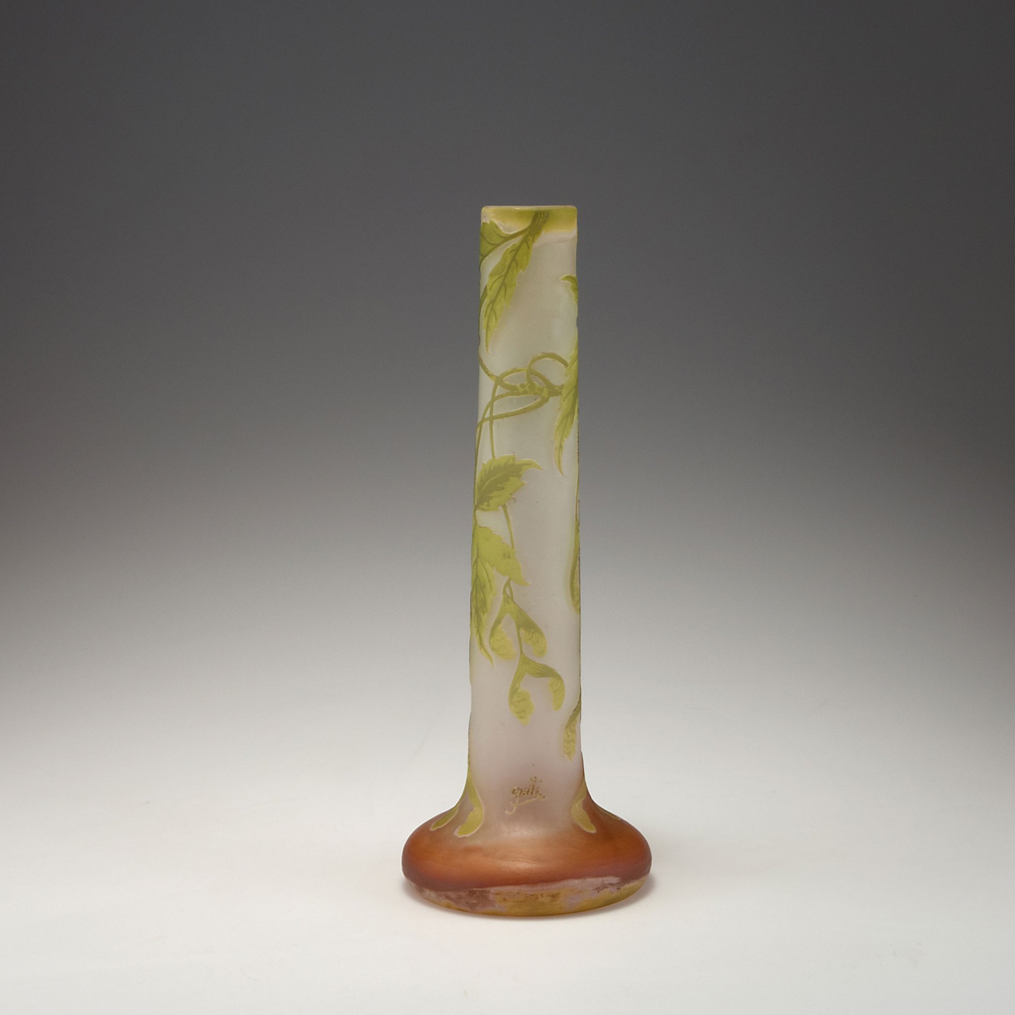 Emile Gallé, Nancy. Vase with ash-leaved maple, 1902/03. H. 34.2 cm. Glass, clear, orange, white and moss green. Multiply etched pattern. Signed: Gallé.