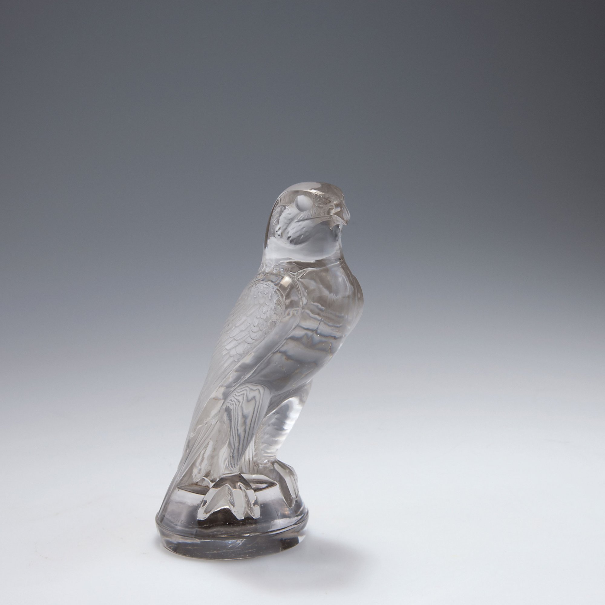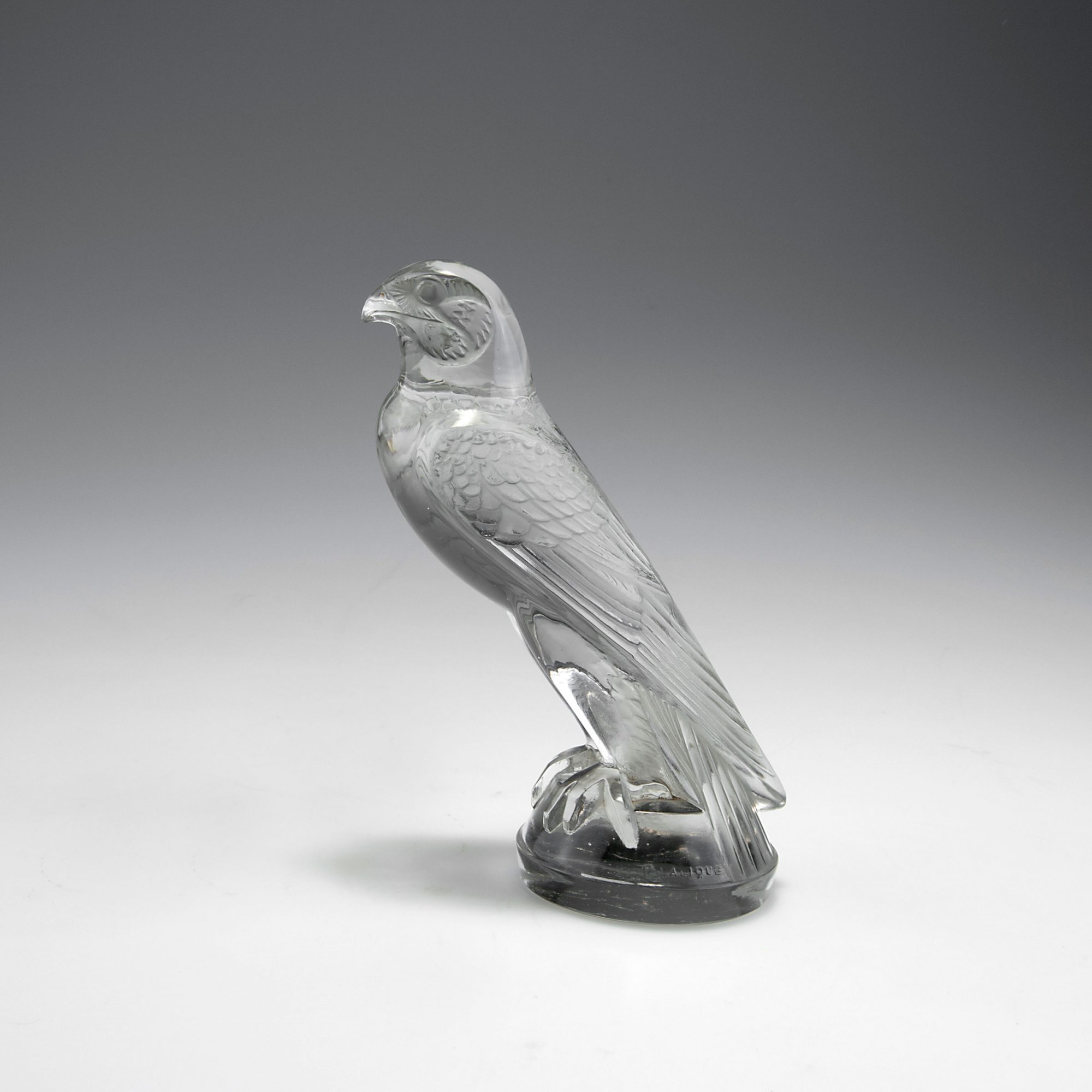 René Lalique, Wingen-sur-Moder. 'Faucon' radiator maskot, 1925. H. 15.7 cm. Moulded clear glass, part matted. Marked: R. LALIQUE FRANCE (2x).