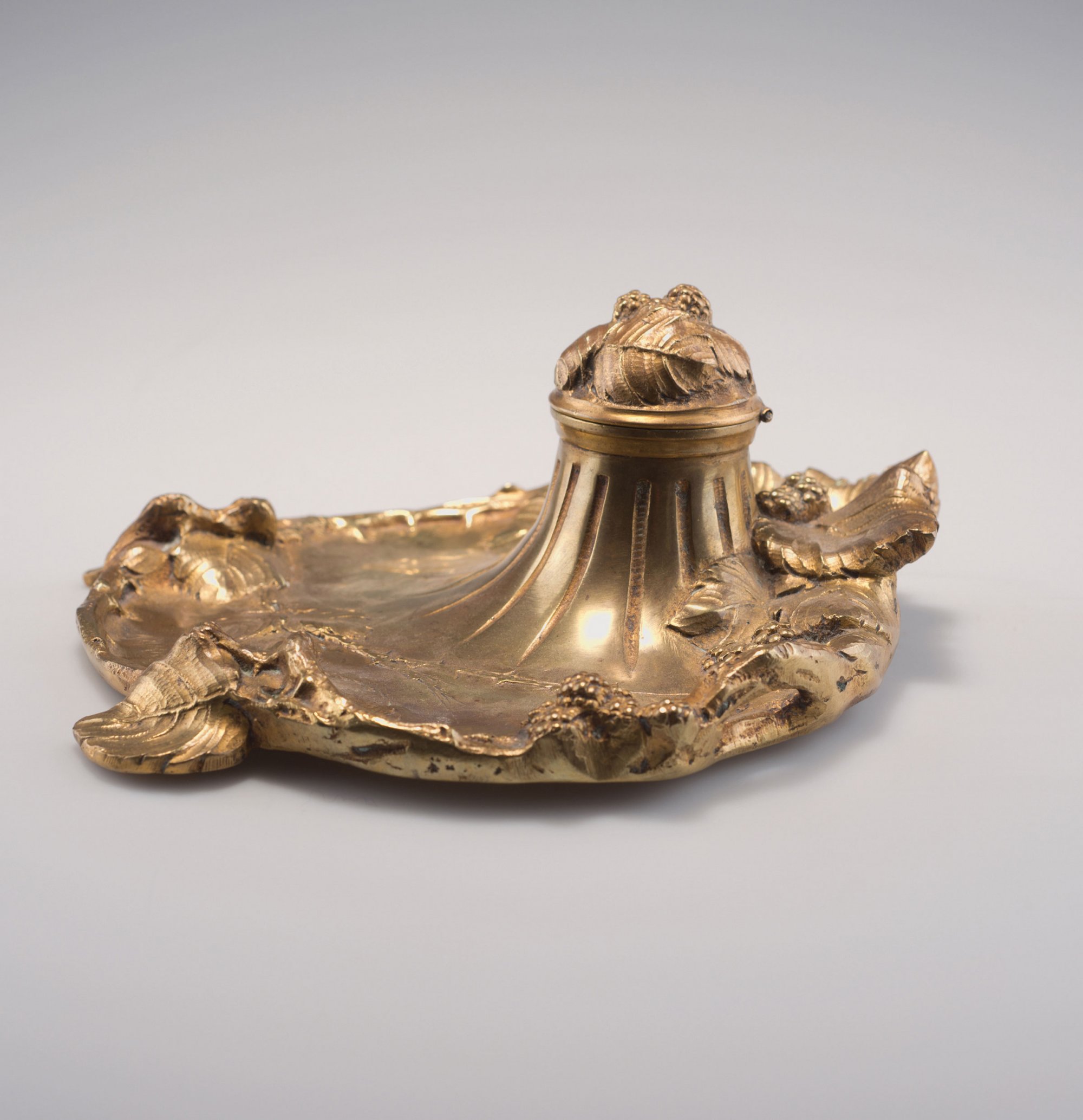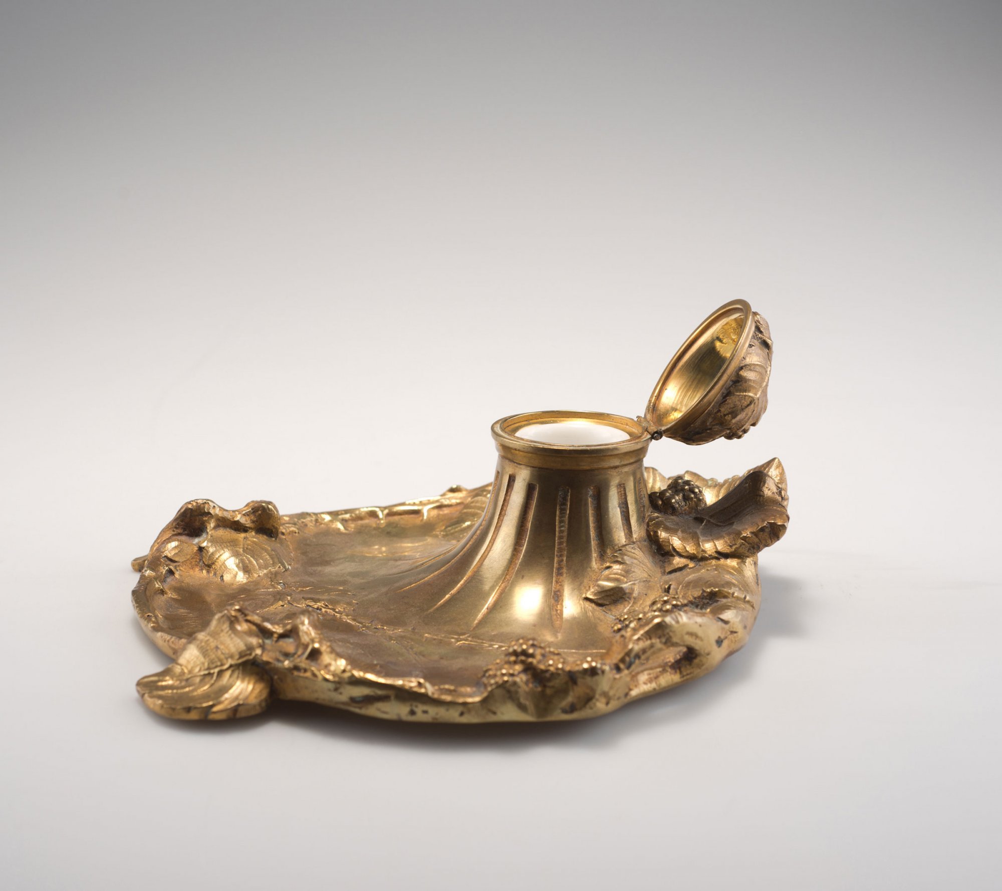 Albert Marionnet, Paris. 'Blackberry' stationery, c1900. H. 9 cm; 20.5 x 21.5 cm. Gilded bronze. Porcelain inset. Marked: A. MARIONNET.