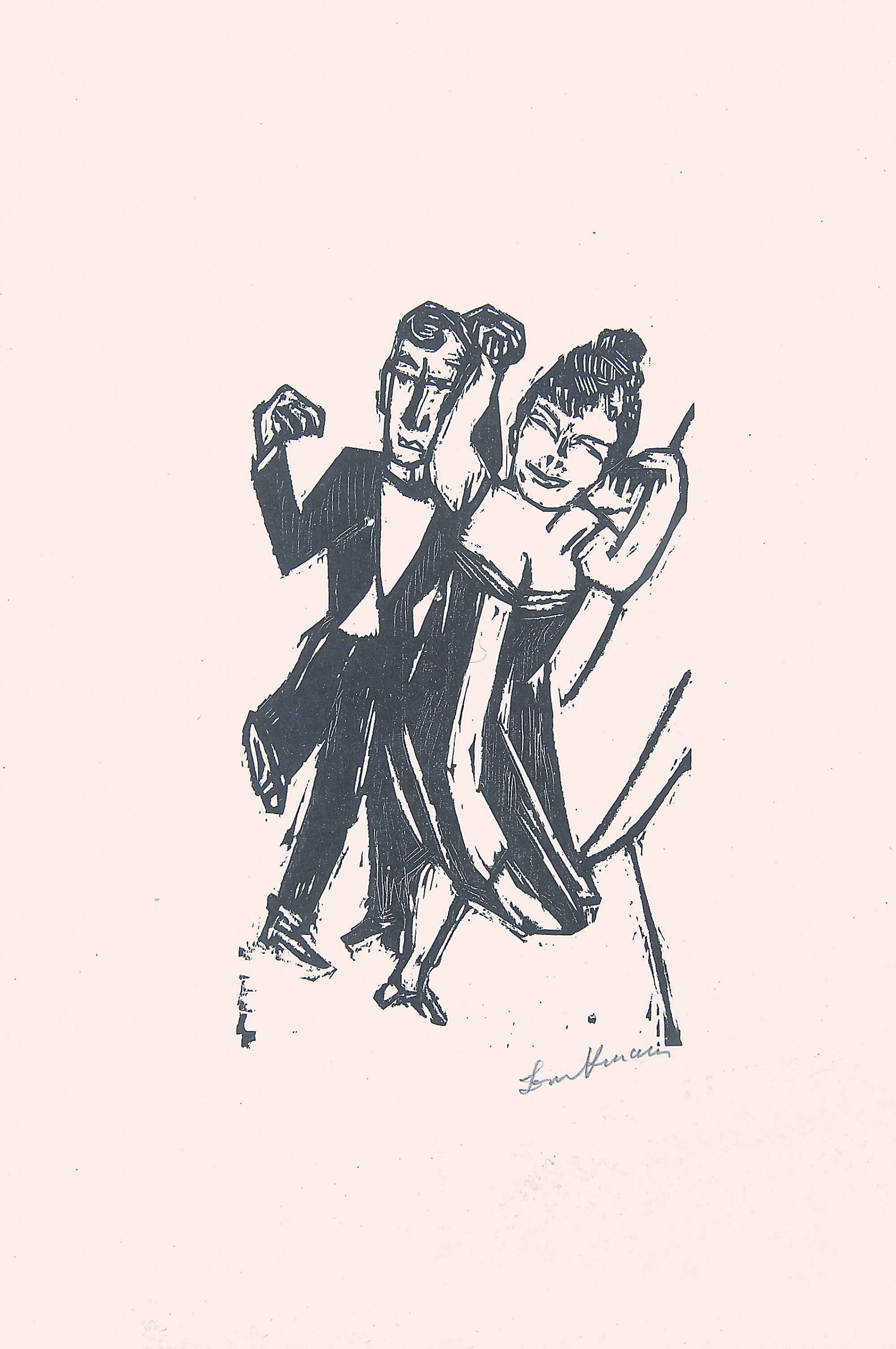 Max Beckmann. 'Dancing couple', 1923. 17.7 x 10.1 cm (depiction), 32.0 x 24.5 cm (paper). Woodcut on imitated Japan paper. Signed: Beckmann (pencil). Publ. R. Piper & Co., Munich 1924, printed at C. Wolf & Son, Munich.