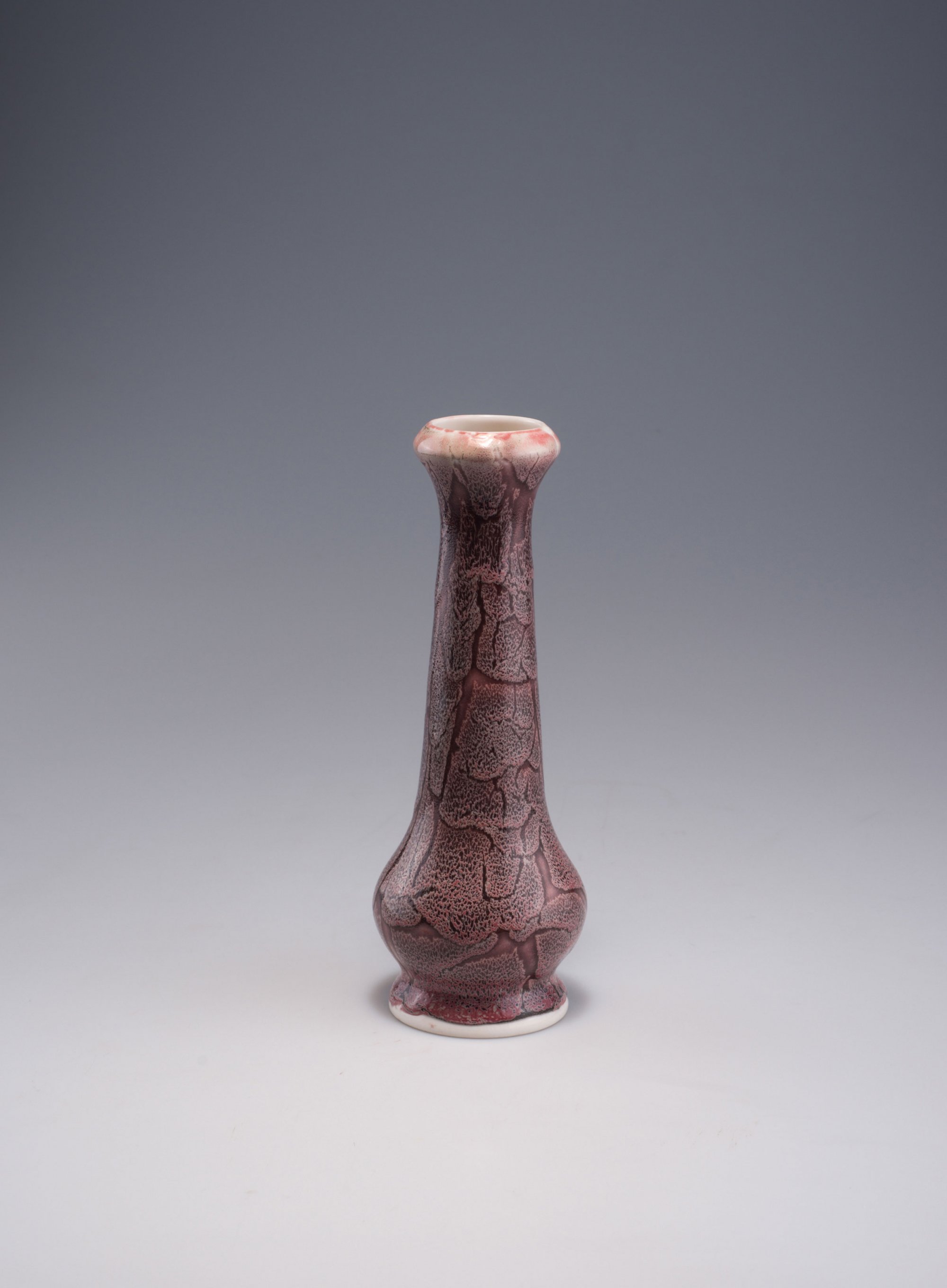 KPM Berlin. Seger Vase, 1905. H. 27.5 cm. Designed by Theodor Schmuz-Baudiss. Made in 1905. Seger porcelain, high-firing glaze, pink. Marked: Sceptre SgrP, 7795 M.