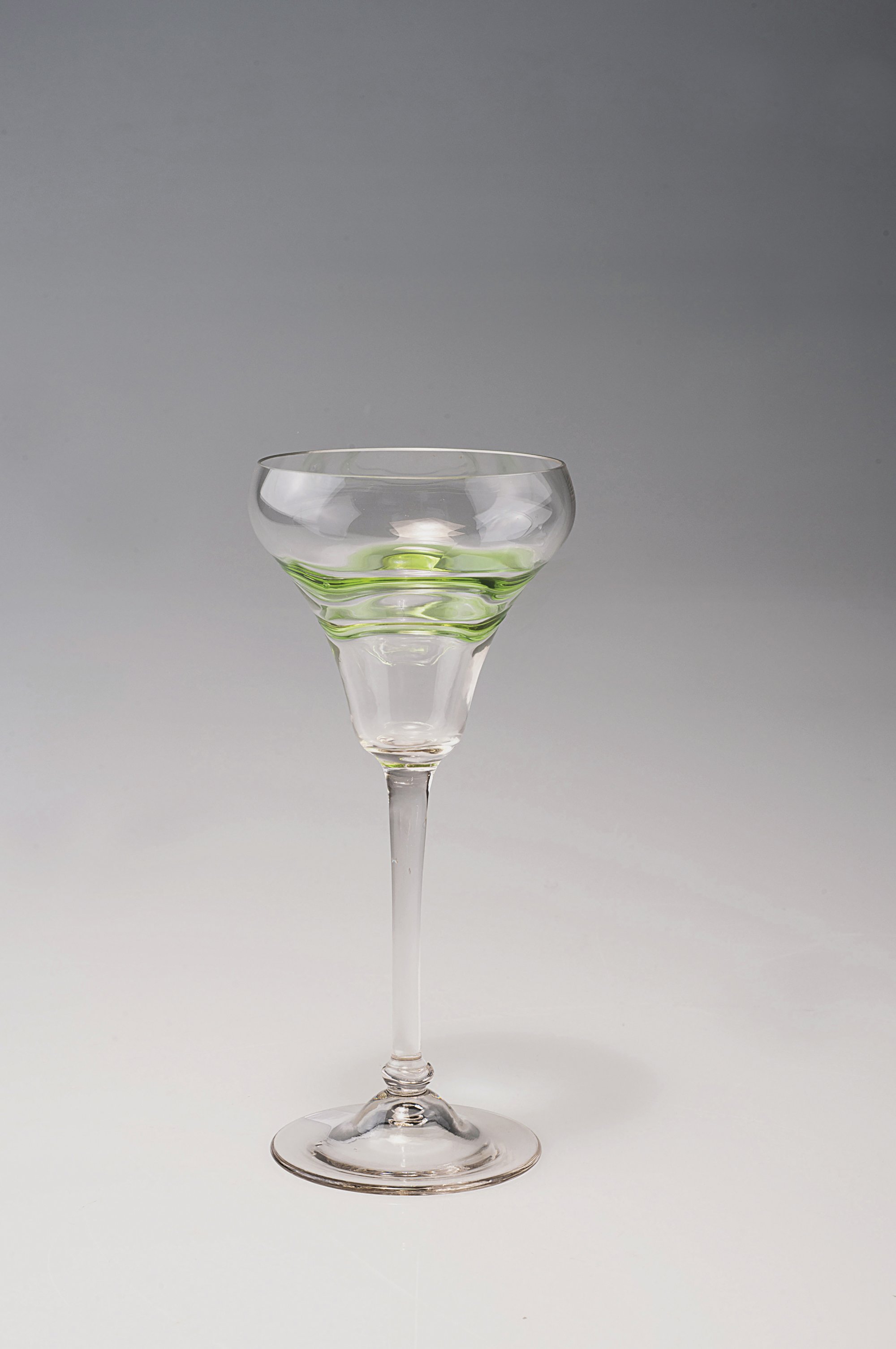 Theresienthaler Krystallglasfabrik (in the style of). Wine glass, c1905. H. 18.2 cm. Clear glass with applied green band.