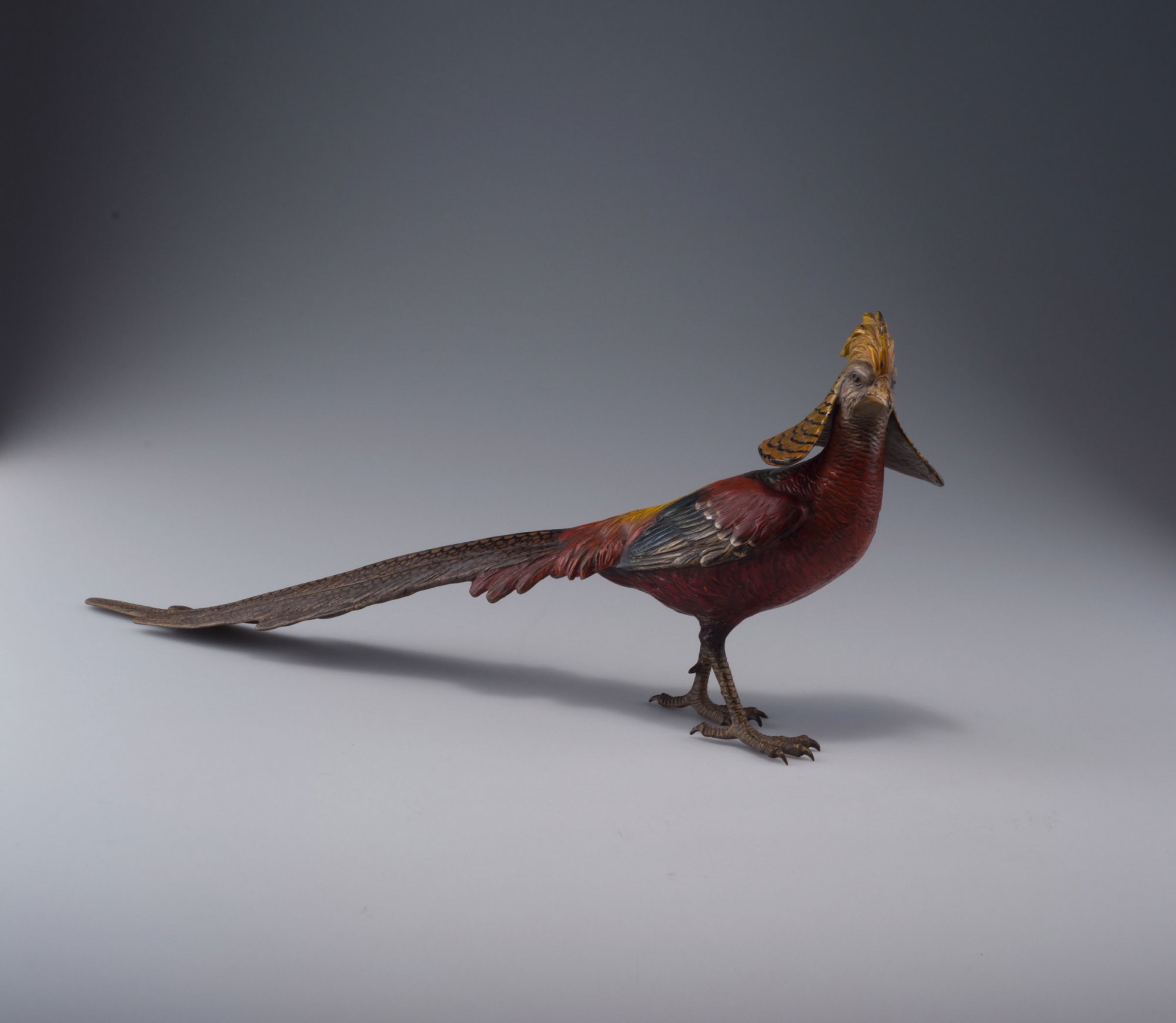 Vienna. Golden Pheasant, c1890. H. 23.3 cm; 48.3 x 8.8 cm. Bronze, polychromatic paint.